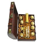 Mache jemandem eine wertvolle Freude Manchmal sind Schokolade und Sekt genau das Richtige: Als Dankeschön an die beste Freundin, als Entschuldigung oder als kleine Aufmerksamkeit zwischendurch – mit Piccolo und Süßigkeiten liegst Du auf jeden Fall richtig! In diesem Fall kommt diese Kombination auch noch in einer wunderbaren Verpackung, die der Geste noch zusätzlich Ausdruck verleiht. Die kleine Flasche und die goldenen Pralinen sind nämlich in einer rustikalen Holztruhe verstaut, die mit goldenen Flocken befüllt ist, auf denen Dein Geschenk extra hübsch zur Geltung kommen wird.