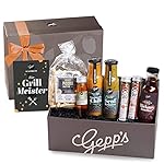 Details: Gepp’s Feinkost Genuss-Box für Männer I Geschenkbox gefüllt mit Delikatessen wie BBQ Saucen, Chili Öl, Rubs und Grissini…