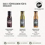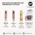 DAS ERWARTET GENIESSER: Süßlich-rauchige Hickory Bourbon Sauce, Senf Kräuter Sauce mit herrlich frischer Note, würzig-scharfe Knoblauch-Chili-Sauce, aromatische Australian BBQ und Texas Super Rubs sowie knusprige Grissini und kalt gepresstes italienisches Olivenöl mit Peperoncino. Dazu gibt es eine schöne Grußkarte mit Ihrem Wunschtext.
