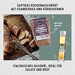 DAS ERWARTET FEINSCHMECKER – Gefüllt mit einer Auswahl an besten Spezialitäten, macht dieser Präsentkorb Genießer glücklich: italienisches Olivenöl mit Orangenaroma, unser fruchtiger Granatapfel Essig, knussprige Grissini aus dem Piemont, eine herzhafte Brotbackmischung mit Kürbiskernen und Cranberries und passend dazu unser aromatischer Bruschetta Dip.
