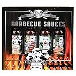 GESCHENK-BOX: Das Set besteht aus vier verschiedenen Fläschchen mit würzigen, pikanten Barbecue-Saucen. Ideal als Geschenk für Grill-Fans, Fleisch-Liebhaber und alle, die es scharf mögen