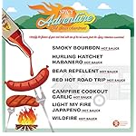 INHALT: Das Probierpaket beinhaltet 7 kleine Fläschchen, jedes gefüllt mit einer anderen Hot Sauce. Enthalten sind die Chilisaucen Smoky Bourbon, Hurling Hatchet Habanero, Bear Repellant, Campfire Cookout, Light My Fire Jalapeno, Red Hot Road Trip und Wildfire
