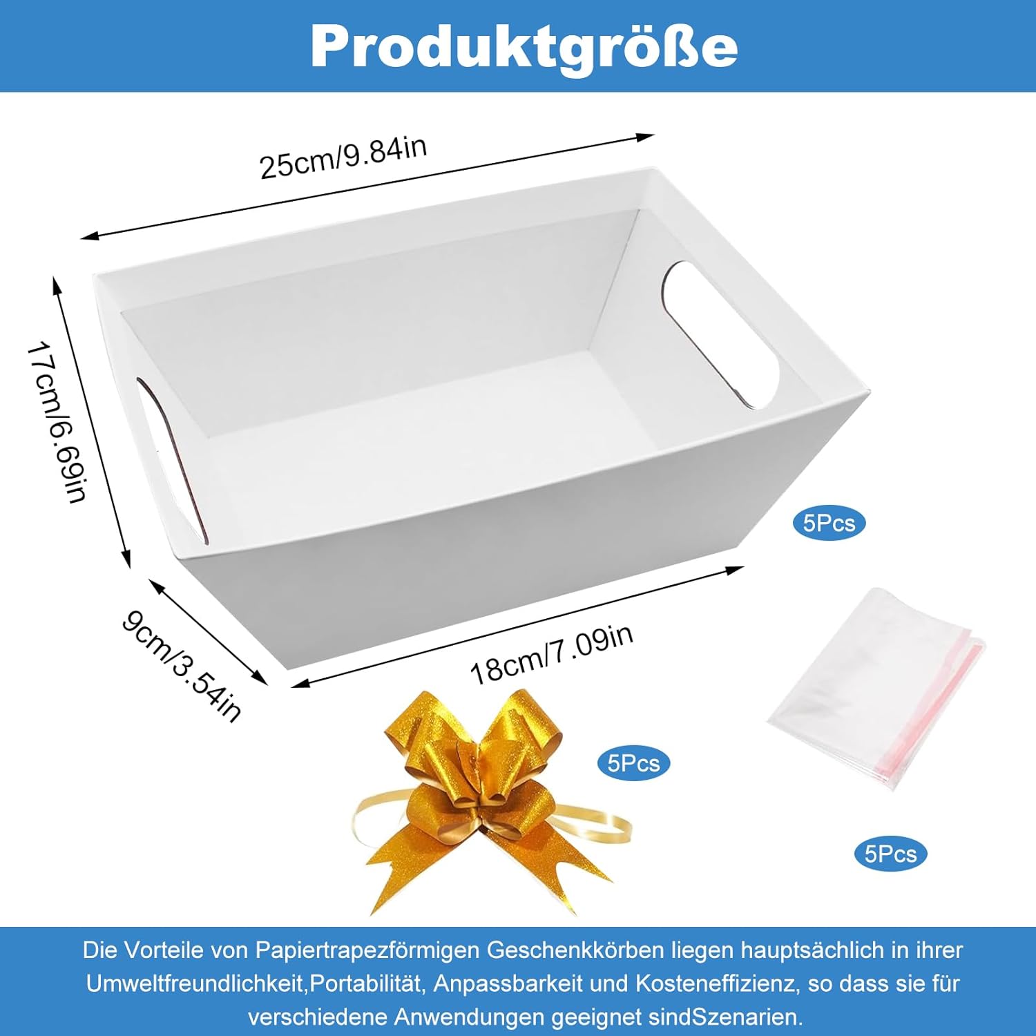 Geburtstags-Präsentkörbe – 5 Stück Geschenkkorb Leer, Präsentkorb Leer Korb für Geschenke mit Geschenkpapier & Bänder, Präsentkorb Geschenkbox für Halloween Geburtstag Valentinstag Weihnachten Hochzeit, Weiß