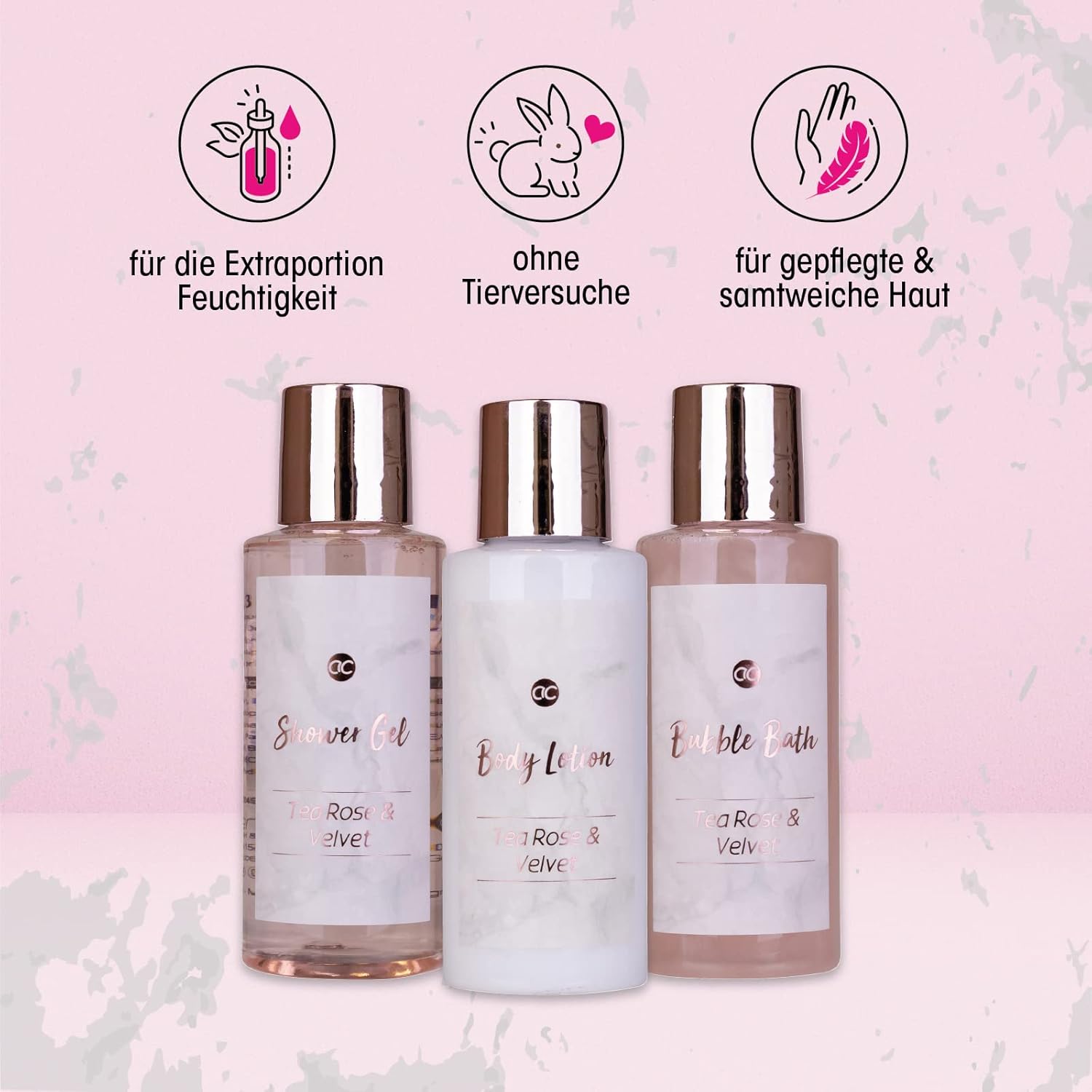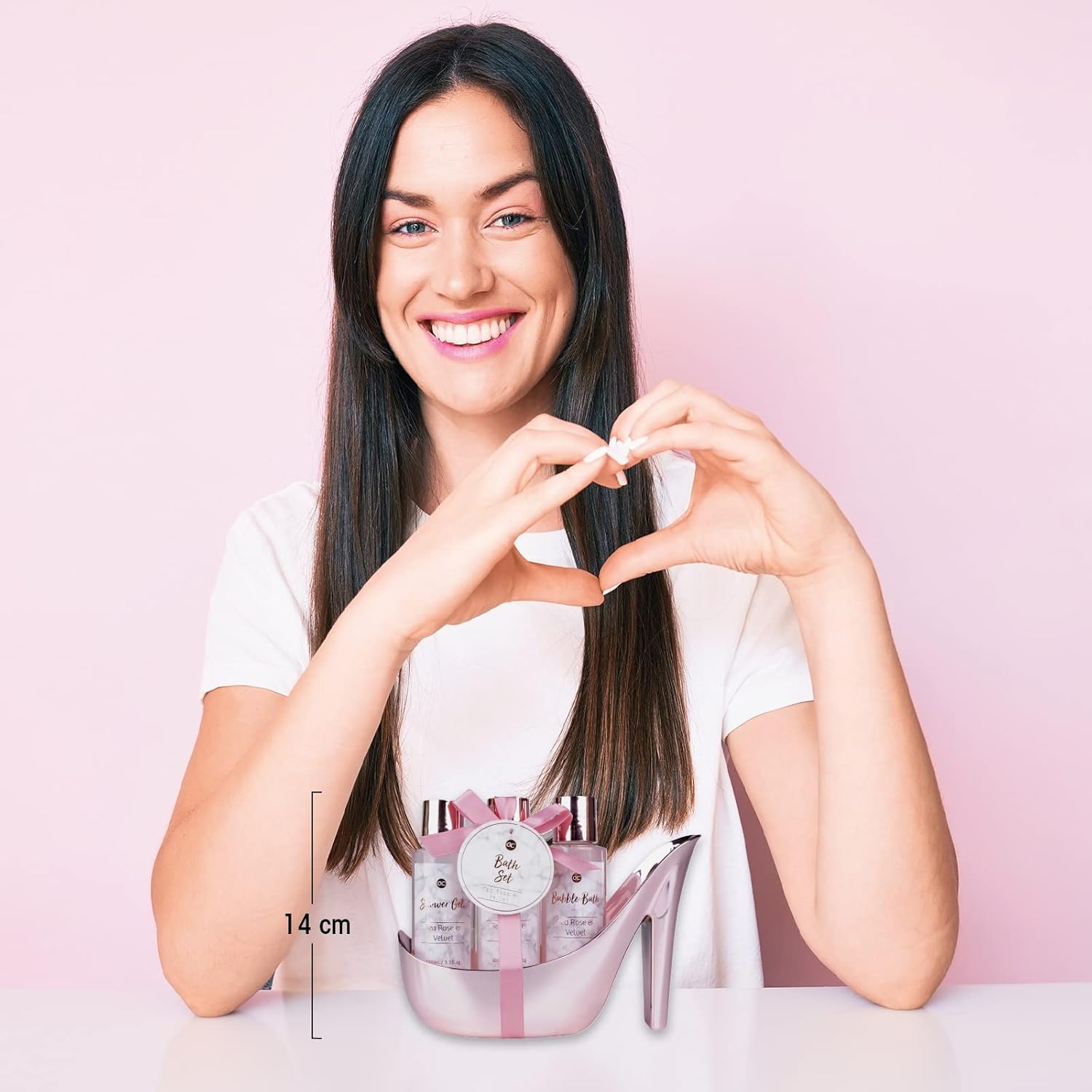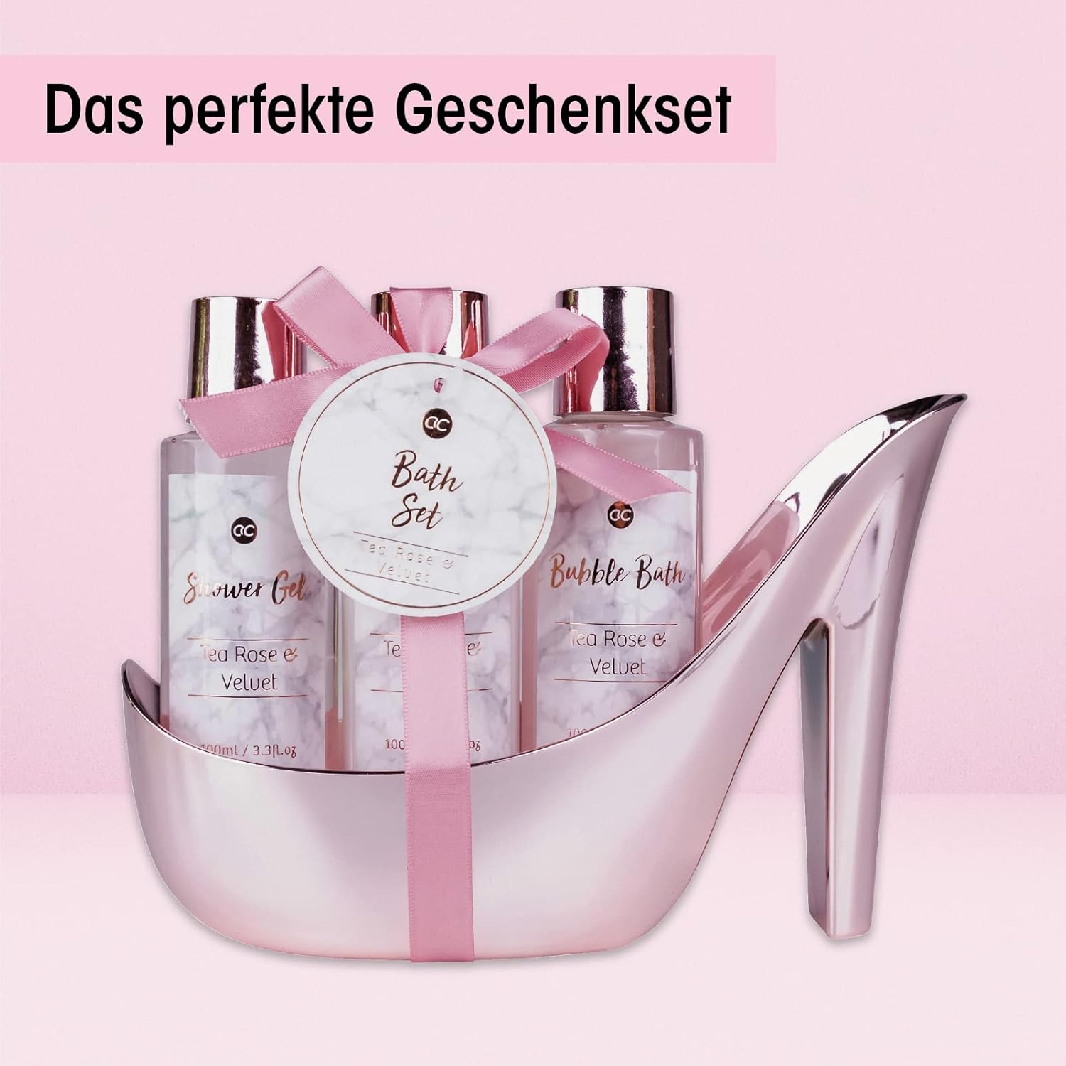 Geburtstags-Präsentkörbe – Accentra, Marmor-Badeset, Geschenkset in wunderschönen rosa Pumps, 4-teiliges Badeset, Beauty-Set, Duschset für ein entspanntes Spa-Erlebnis, Rose