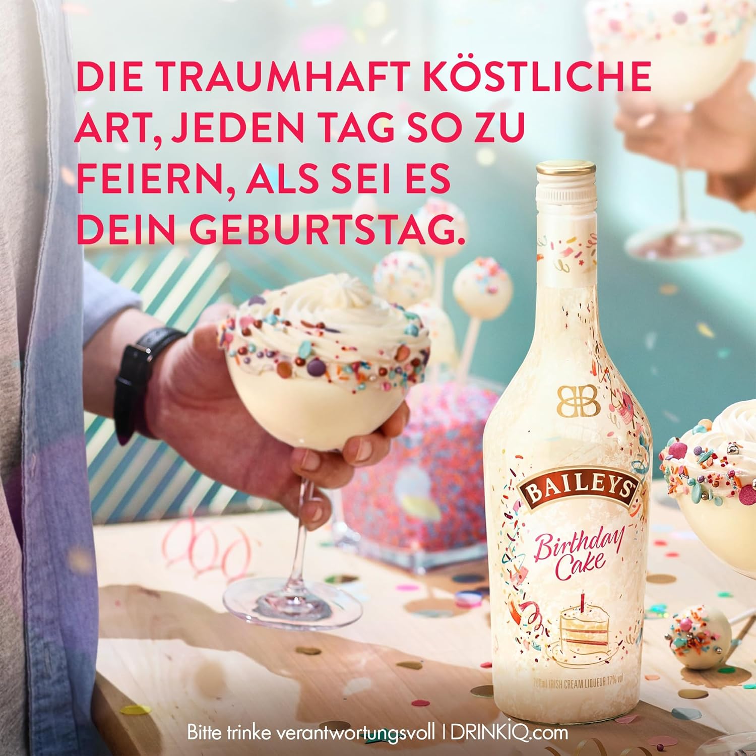 Geburtstagsfeier mit Baileys – Baileys ist die süßeste Symbiose aus feinem irischen Whiskey, irischer Sahne, reichhaltigen Schokoladen- und Vanillearomen. Für diesen besonderen Baileys-Geburtstagskuchen kombiniert Baileys den köstlichen Geschmack von allem, was wir an Geburtstagskuchen lieben! Steigen Sie direkt ins Glas durch die Geburtstagsfeier oder verschenken Sie gelungene Torten an Ihre Liebsten