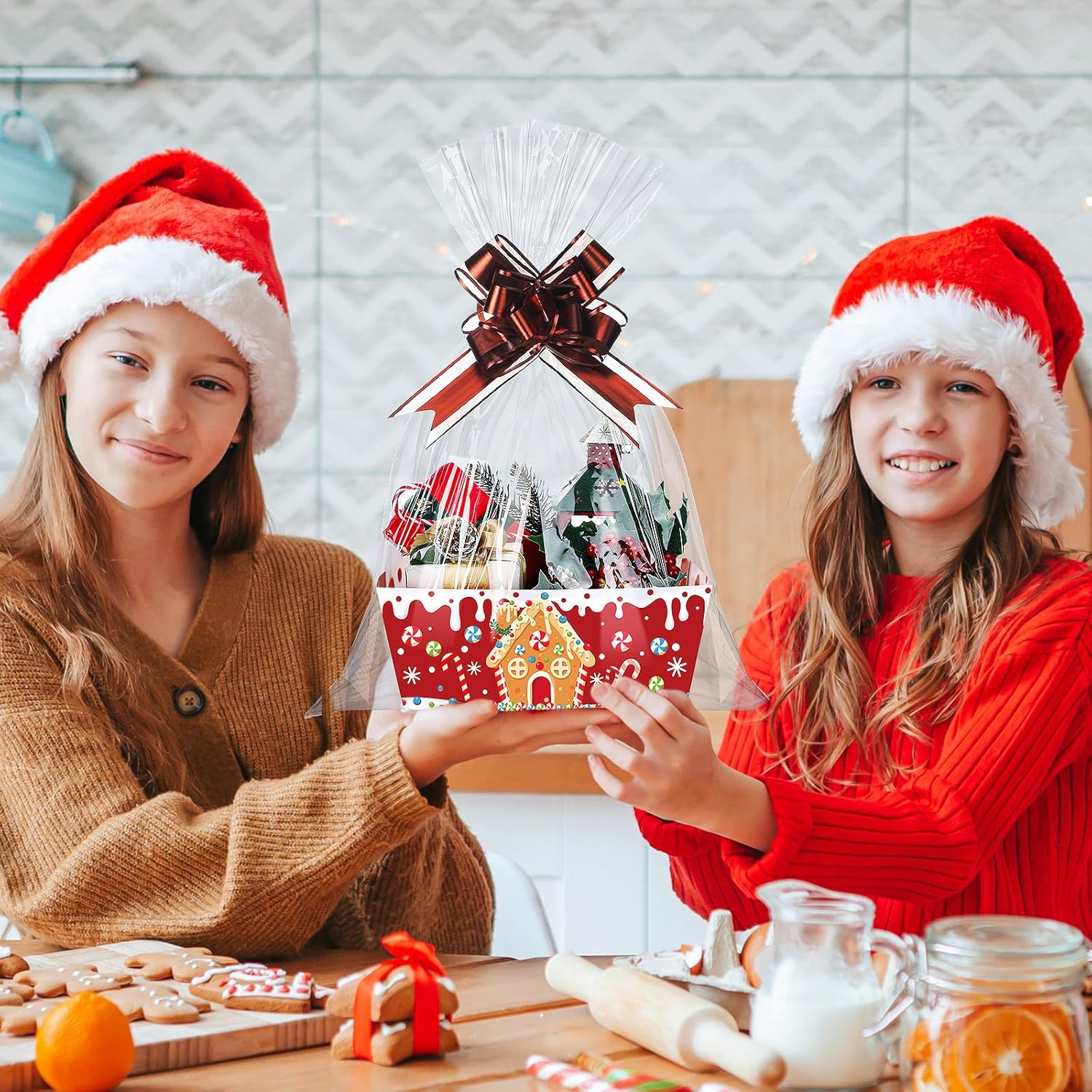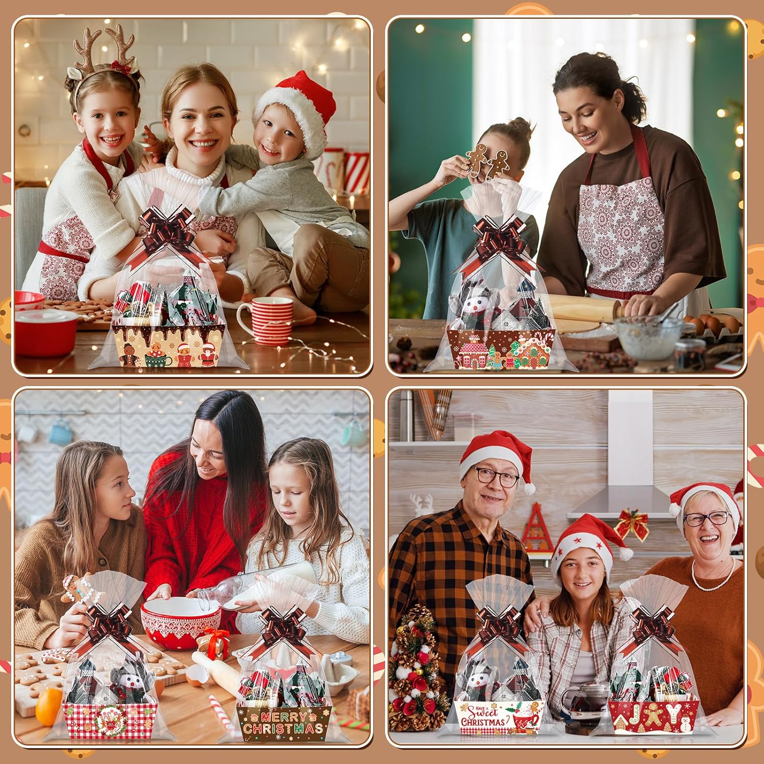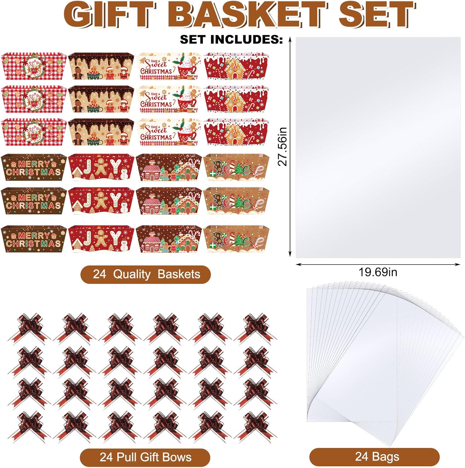 Geburtstags-Präsentkörbe – Cholemy 72 Stück Weihnachts-Geschenkkörbe, leer zum Befüllen, DIY-Korb für Geschenke, leere Großpackung, 24 Markttabletts mit Griffen, 24 transparente Korbtaschen, 24 Schleifen für Weihnachten