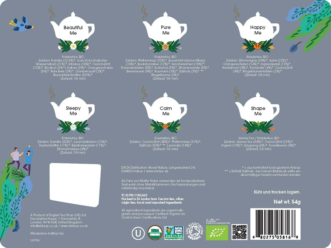 Geburtstags-Präsentkörbe – ETS – Organic Tea Collection „Wellness Collection“ in Elegant Metal Tin, Tea Gift to Feel Good for Christmas, Easter, Birthday, 6 x 6 Varieties