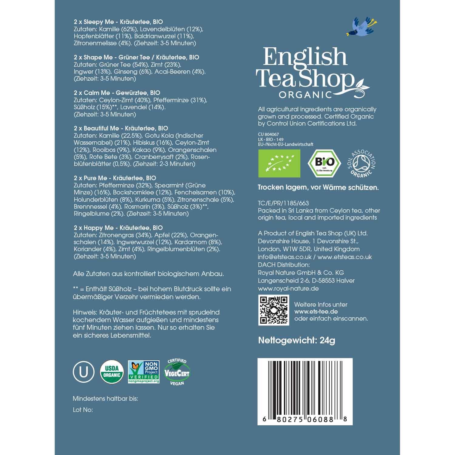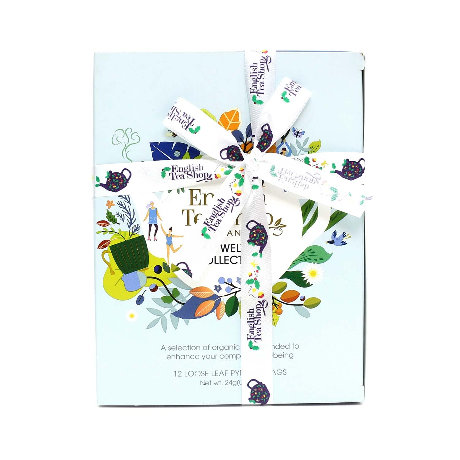 Geburtstags-Präsentkörbe – ETS Tea Gift with Bow „Wellness Tea Collection“ | 6 x 2 Different Organic Herbal Tea Varieties to Feel Good | Tea Tasting Set and Gift Box for Birthday, Easter, Mother’s Day | 12 Pyramid Bags