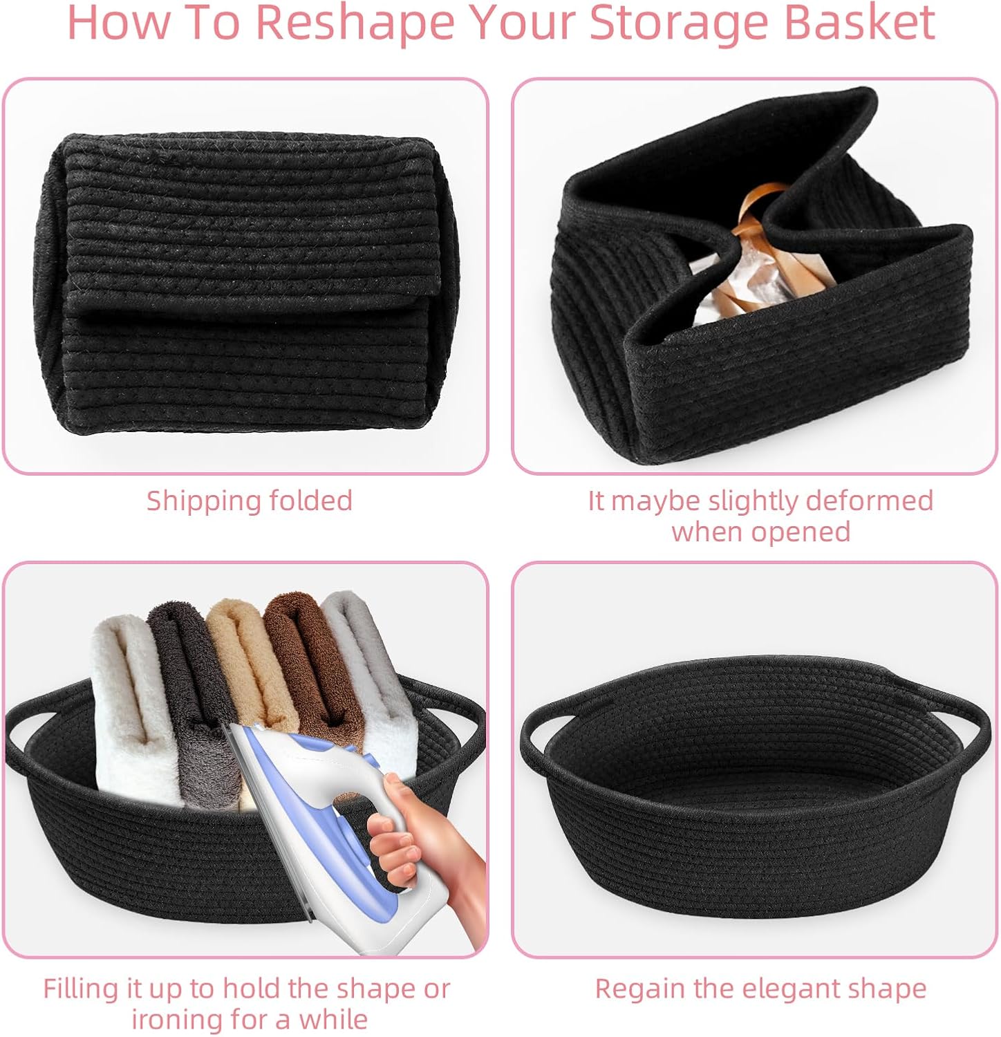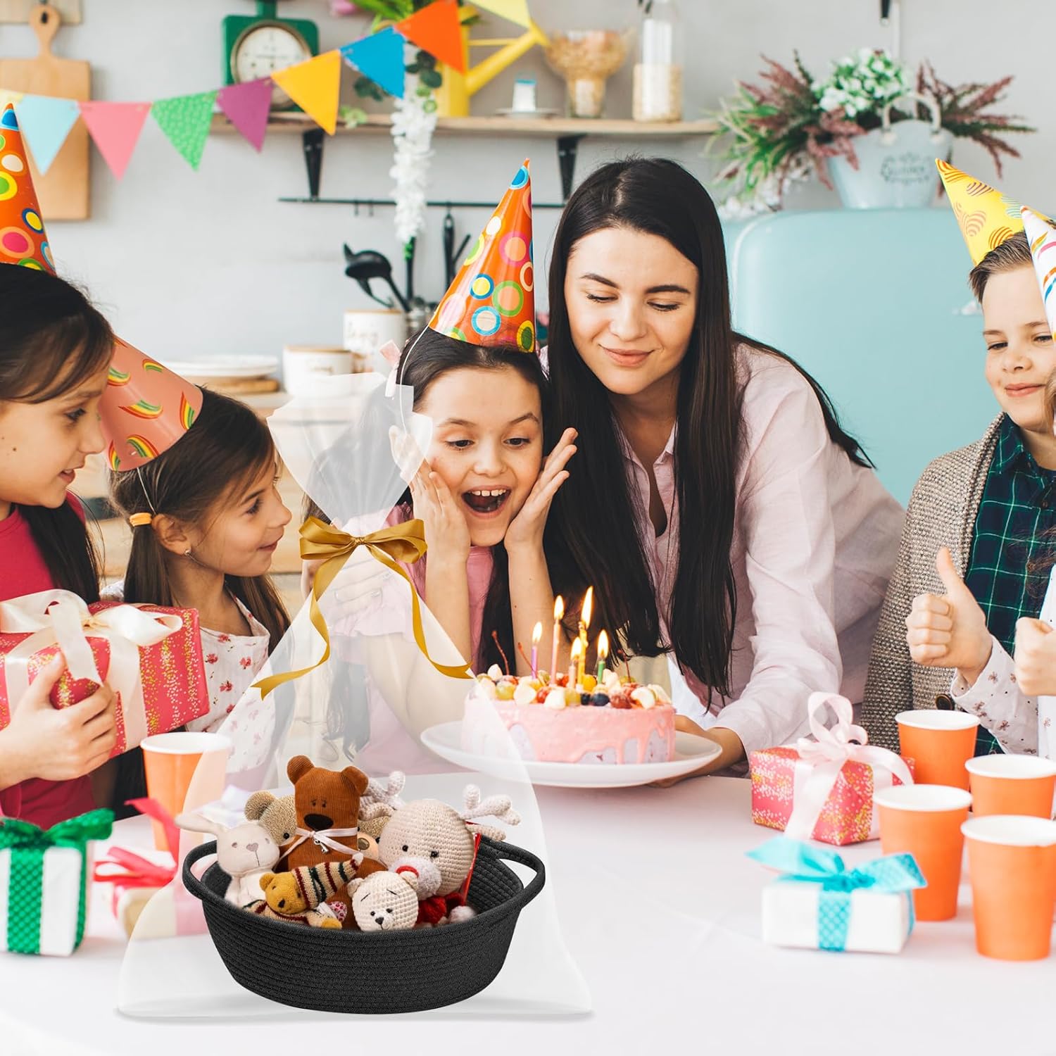 Geburtstags-Präsentkörbe – FRUHLING Geschenkkorb, leerer geflochtener Korb, Geschenkkorb mit Zellophantüten und Schleife, Aufbewahrungskorb, Baumwollseil, geflochten für Babyparty, Geburtstag, Hochzeit, Festival (schwarz)