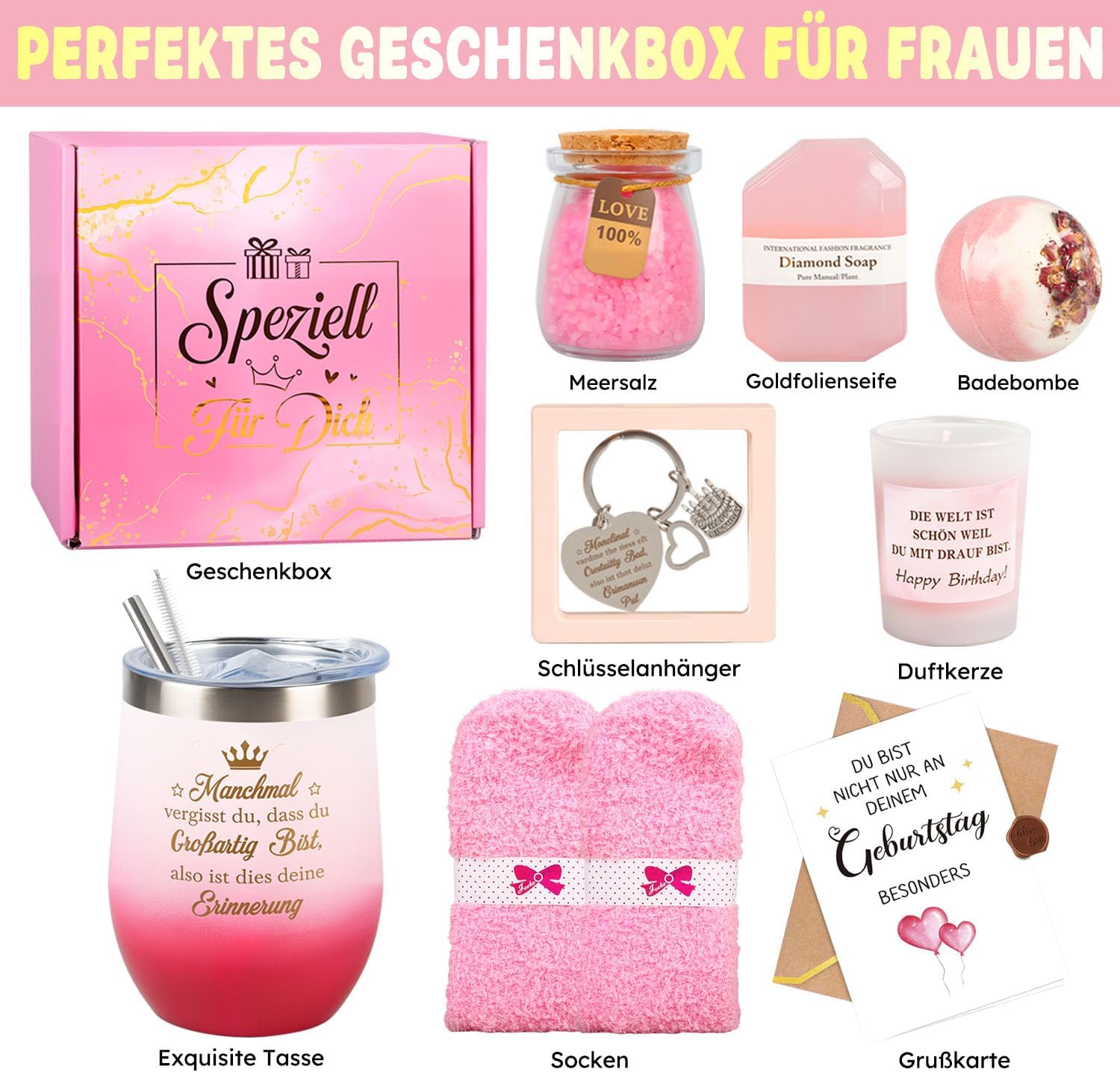 Geburtstags-Präsentkörbe – Geburtstagsgeschenk für Frauen, personalisierte Geburtstagsgeschenke, Geburtstagsgeschenkset, besondere Geschenkbox, Spa-Frau, Geburtstagsgeschenk für Freundin, Schwester, Ehefrau, Mutter, Kollegin