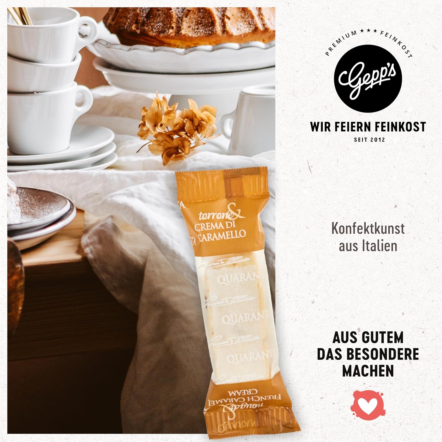 Zum Warenkorb hinzufügen Zum Warenkorb hinzufügen Zum Warenkorb hinzufügen Zum Warenkorb hinzufügen Zum Warenkorb hinzufügen Kundenrezensionen 4,6 von 5 Sternen 274 – 4,5 von 5 Sternen 197 4,8 von 5 Sternen 50 4,2 von 5 Sternen 56 4,5 von 5 Sternen 669 Preis 38,99 €38,99 € – keine Daten 34,99 €34,99 € 39,99 €39,99 € 46,99 € 46,99 € 22,99 €22,99 € Mit leckeren Gepp’s Produkten Dieses Geschenkset ist das perfekte Geburtstagspräsent. Die feinen Zutaten unseres Sets können für eine Vielzahl an Gerichten verwendet werden. Die Feinkost-Box Happy Birthday für Feinschmecker lädt zum Kochen ein und ist garantiert ein Hingucker auf jedem Geburtstag. Unser Gourmet-Präsentkorb enthält nur unsere feinsten, italienischen Delikatessen für ein Abendessen zu zweit – herzförmige Pasta, Bio Pesto, zwei Tartufo Dolce Nero, köstlicher Fruchtaufstrich, feinste Rosmarin Cracker & zwei lange Stabkerzen WENN DIR DAS LEBEN ZITRONEN GIBT…: Dann koch‘ etwas Leckeres mit Gepp’s! Die auserwählten Trüffel frisch aus Ligurien, einer Region im Norden Italiens, verleihen jedem Gericht mit ihrem erdig-waldigen Aroma eine unwiderstehliche, luxuriöse Geschmacksnote. Überrasche deine Liebsten mit dem Probierset voller köstlicher Fruchtaufstriche und genießt zusammen die fruchtigen Brotaufstriche. Rojas Reinheitsgebot Ohne künstliche Zusatzstoffe Ohne künstliche Zusatzstoffe Ohne künstliche Zusatzstoffe Ohne künstliche Zusatzstoffe Ohne künstliche Zusatzstoffe Ohne künstliche Zusatzstoffe Geschenk-Anlässe Ob für Eltern, Freunde, Oma und Opa oder den Partner/ die Partnerin. Überrasche das Geburtstagskind mit einer leckeren Auswahl aus unserer Feinkostwelt. Das Feinkostgeschenkset ist das passende Geschenk für klein und groß, jung oder alt. Egal ob als Männergeschenk zum Geburtstag, für die Frau, Freundin, Oma oder Opa. Dieses Set ist perfekt geeignet als Mitbringsel als Valentinstagsgeschenk, Geburtstagsgeschenk, Geschenk zum Jahrestag oder um zwischendurch einfach mal Danke zu sagen Unsere Zitronen-Kochbox ist das perfekte Geschenk für alle, die die frischen sonnengereiften Zitronen genießen wollen – nach den originalen Rezepturen des Familienunternehmens Gepp’s. Zum gemeinsamen Genießen mit dem Partner, als Mitbringsel für die Firmenfeier oder als leckeres Geschenk – Die Köstlichkeiten unseres Feinkost-Geschenksets passen zu jedem Anlass. Das Marmeladen-Geschenkset ist ideal für die süßen Schleckermäuler unter uns