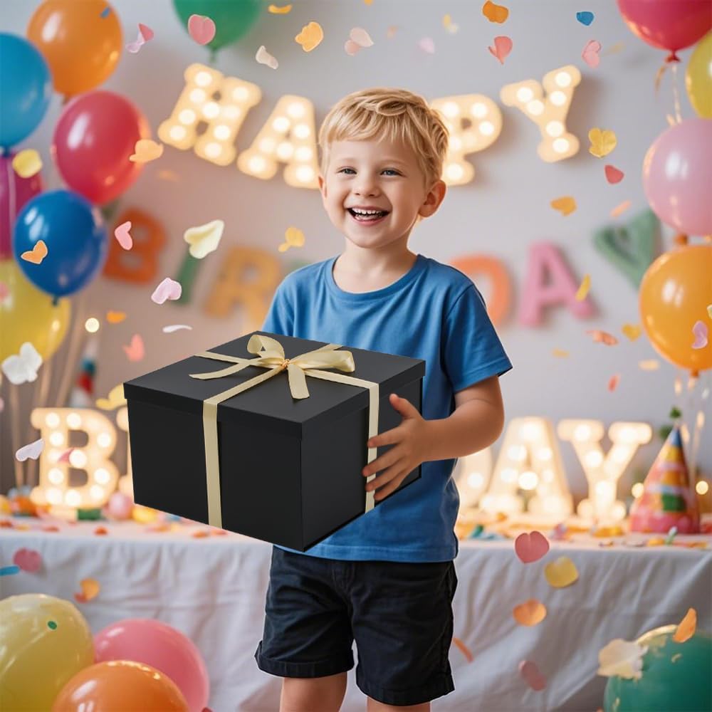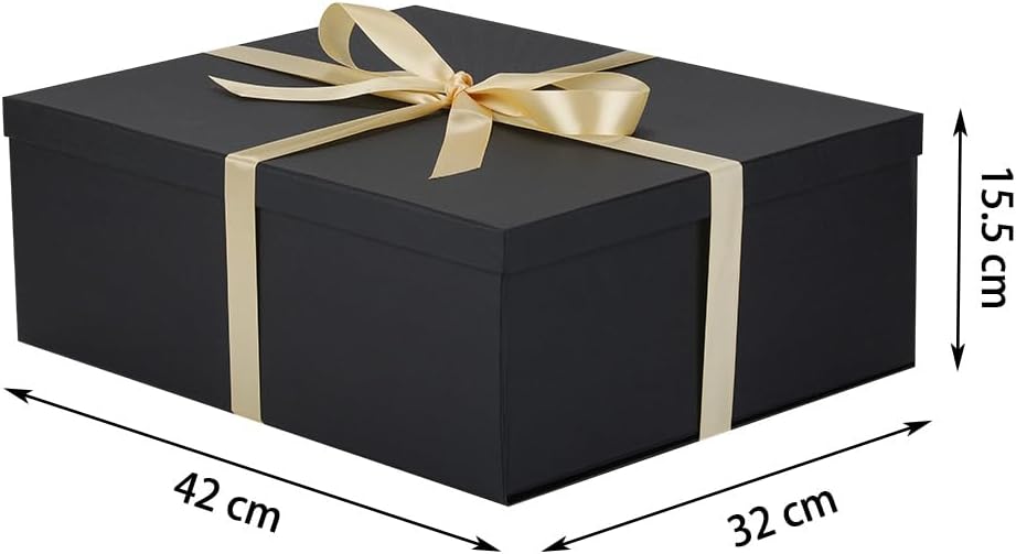 Geburtstags-Präsentkörbe – Geschenkbox mit Deckel 42 x 32 x 15,5 cm XXL, Geschenkbox mit Schleifen, Grußkarten, Bastkorbschnitzel für Schwarz