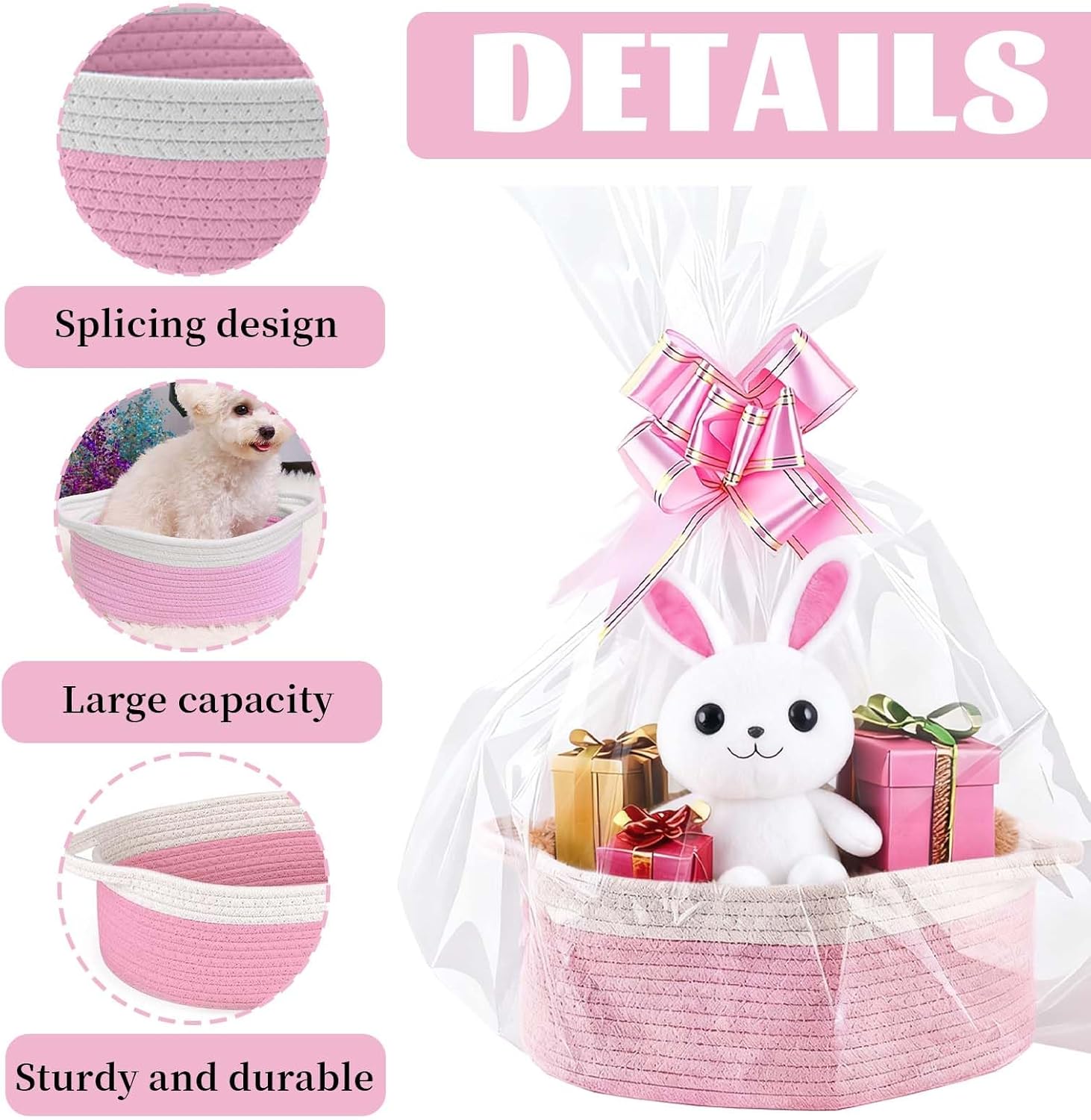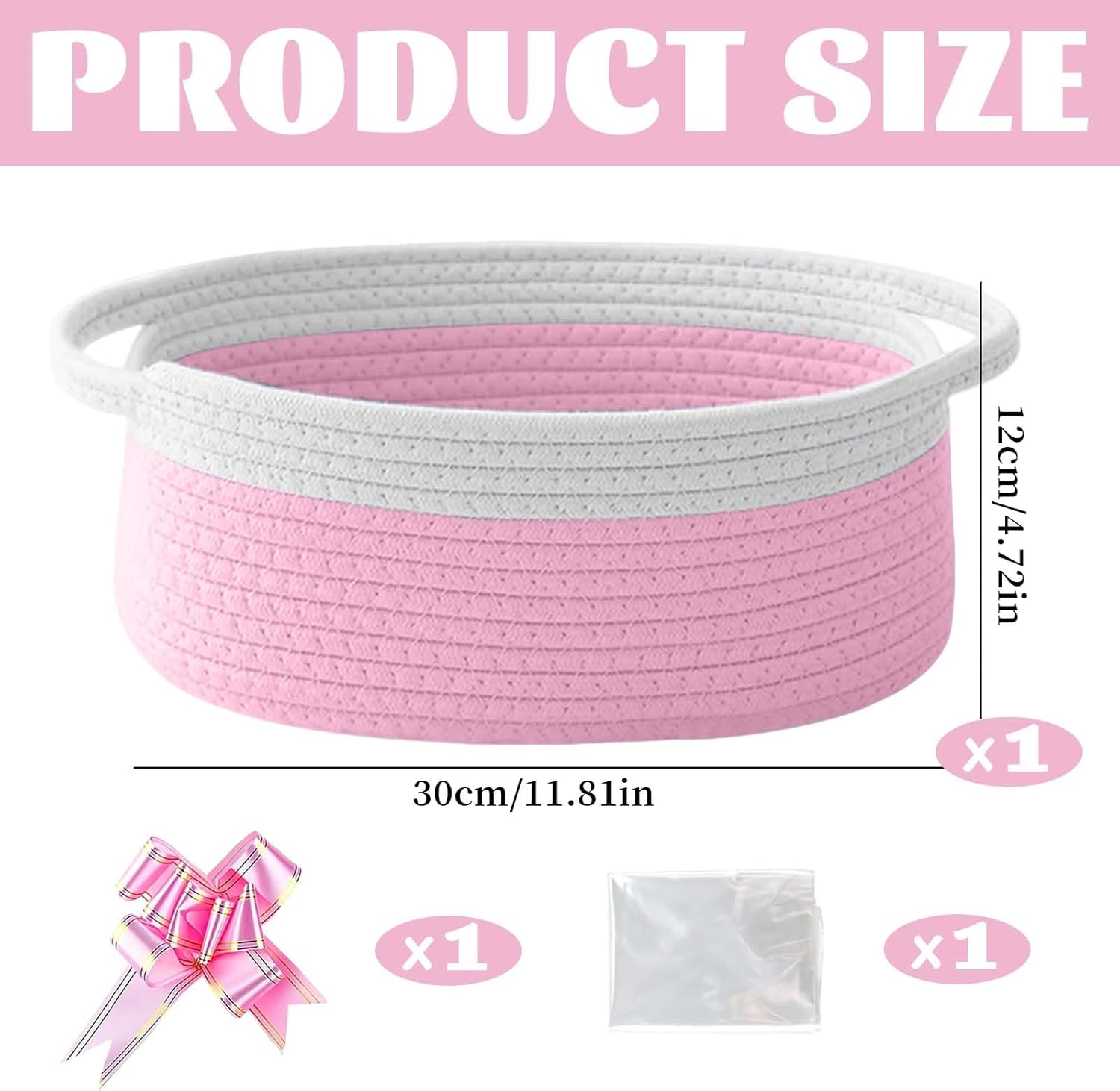 Geburtstags-Präsentkörbe – Geschenkkorb, Geschenkkörbe für Geschenke, leer, 30 × 12 cm, Geschenkkorb, Baumwollkörbe für Geschenke mit Geschenktüte und Schleife für Babyparty, Hochzeit, Geburtstag, Aufbewahrung, Ostern (Rosa)