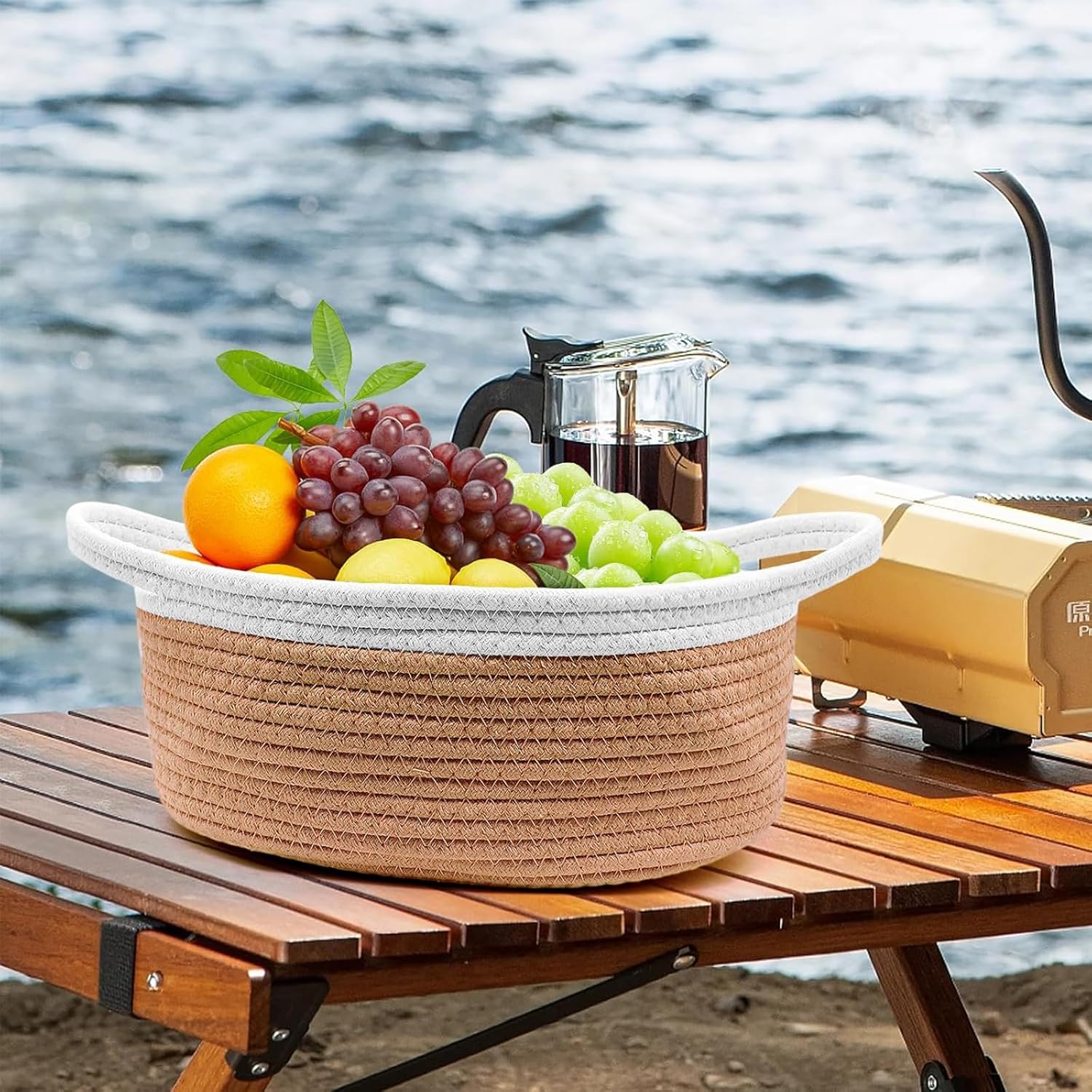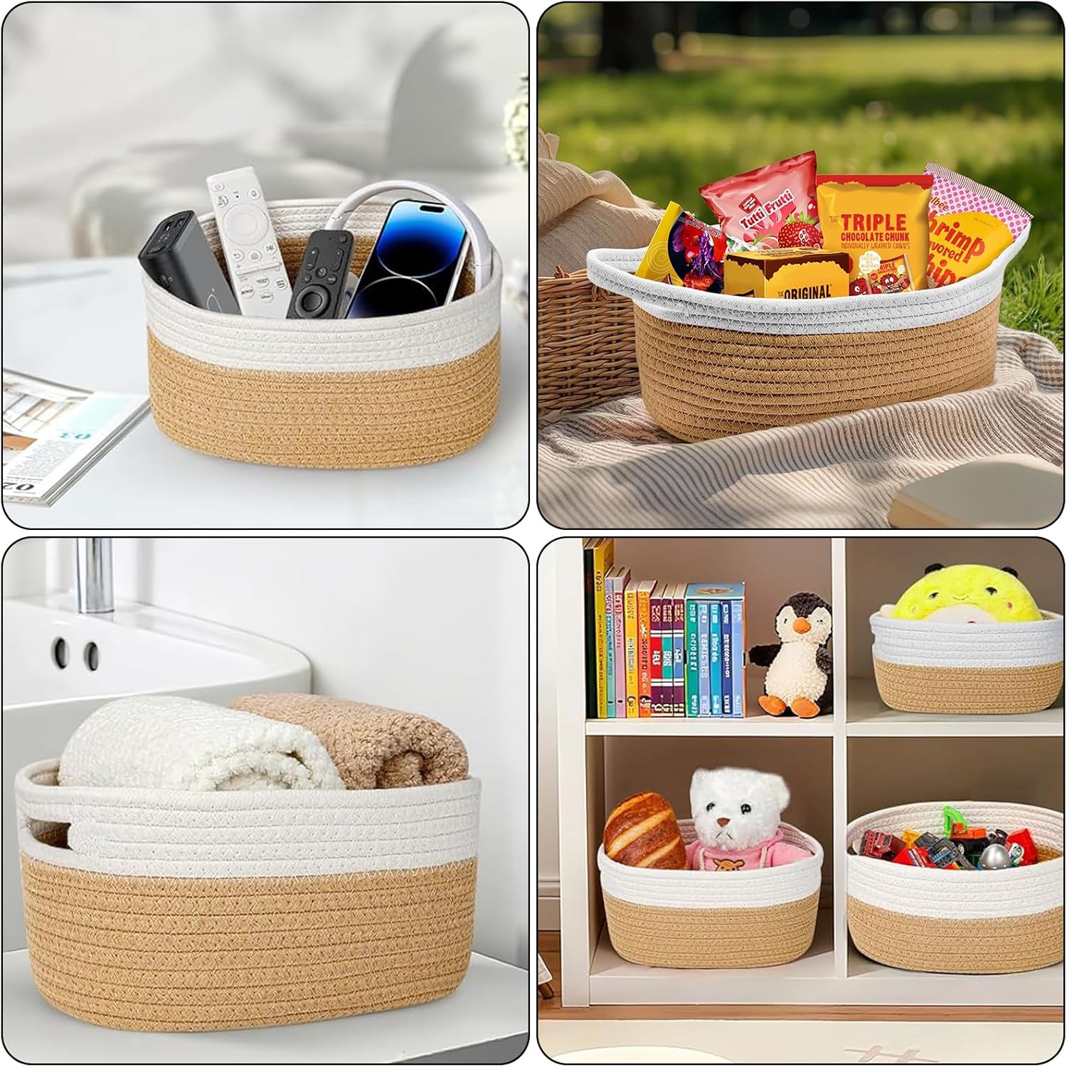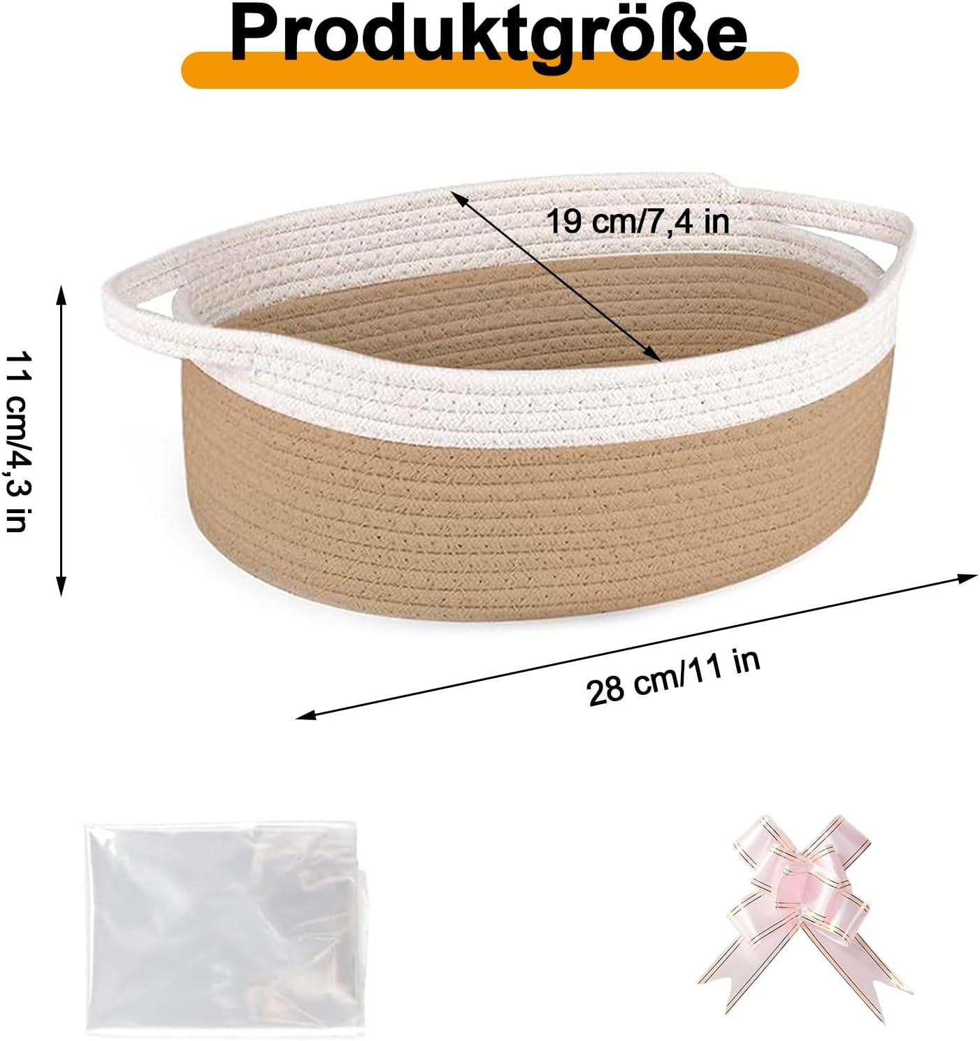 Geburtstags-Präsentkörbe – Geschenkkorb, Geschenkkorb-Leerset, Khaki-Aufbewahrungskorb, aus Baumwollseil, leerer Geschenkkorb, mit Griffen, für Hochzeit, Geburtstag, Party, Weihnachten, Valentinstag, Feiertag