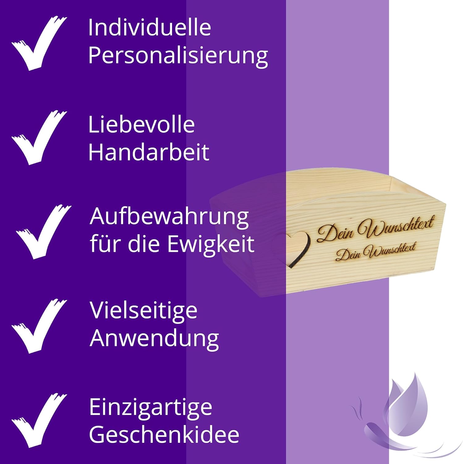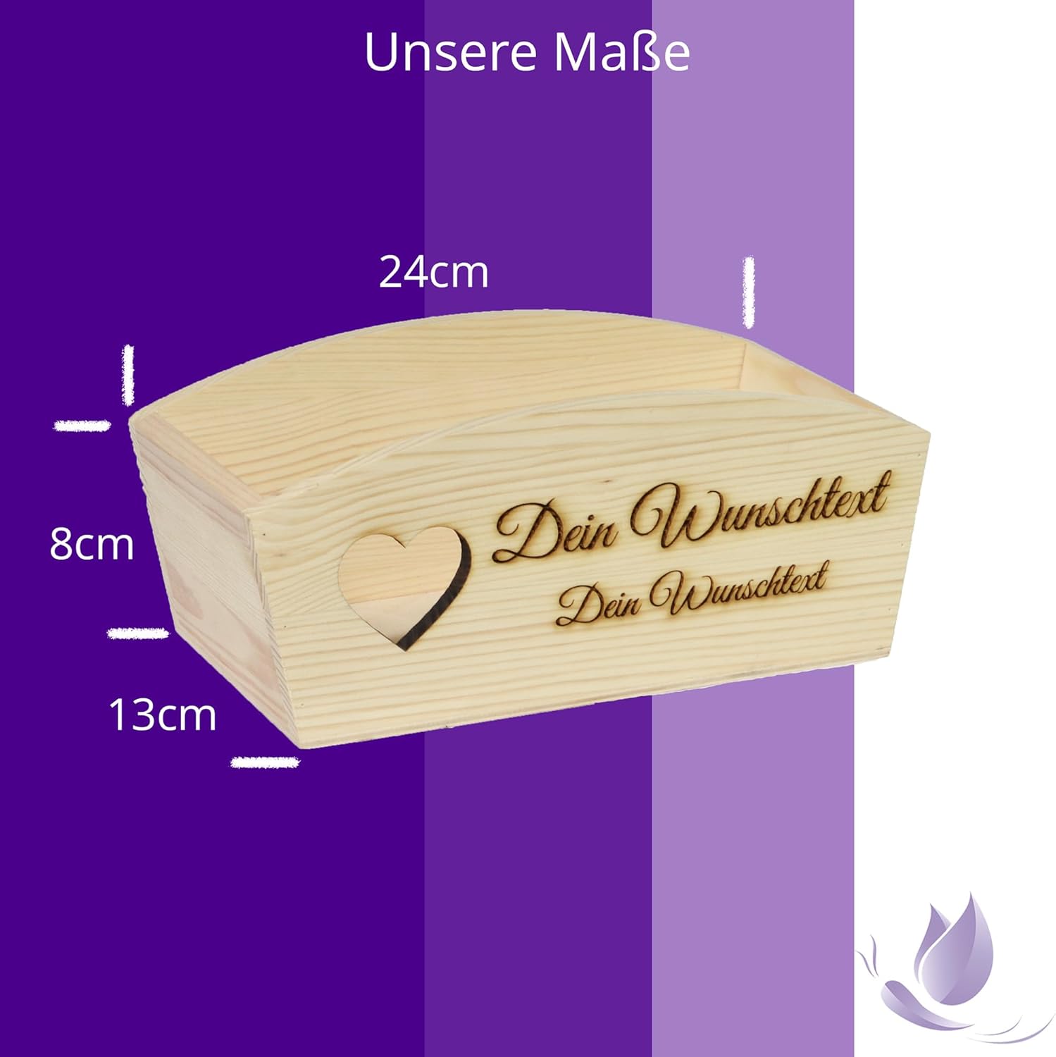 Geburtstags-Präsentkörbe – Geschenkkorb mit personalisiertem Text mit Herz, 24 x 13 x 8 cm, abgerundet, aus Holz, Geschenkidee, Holzkiste, Hochzeit, Geburtstag, Ruhestand, personalisiert