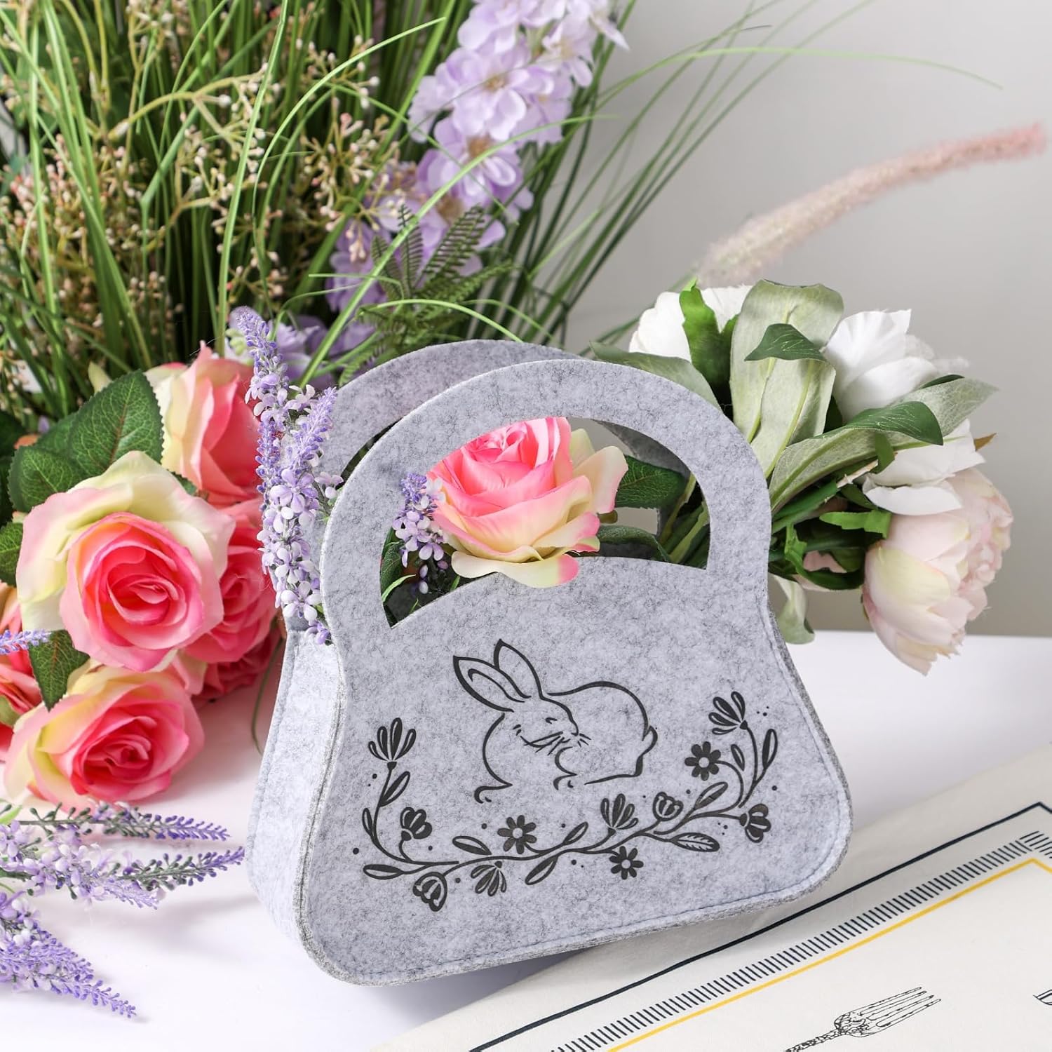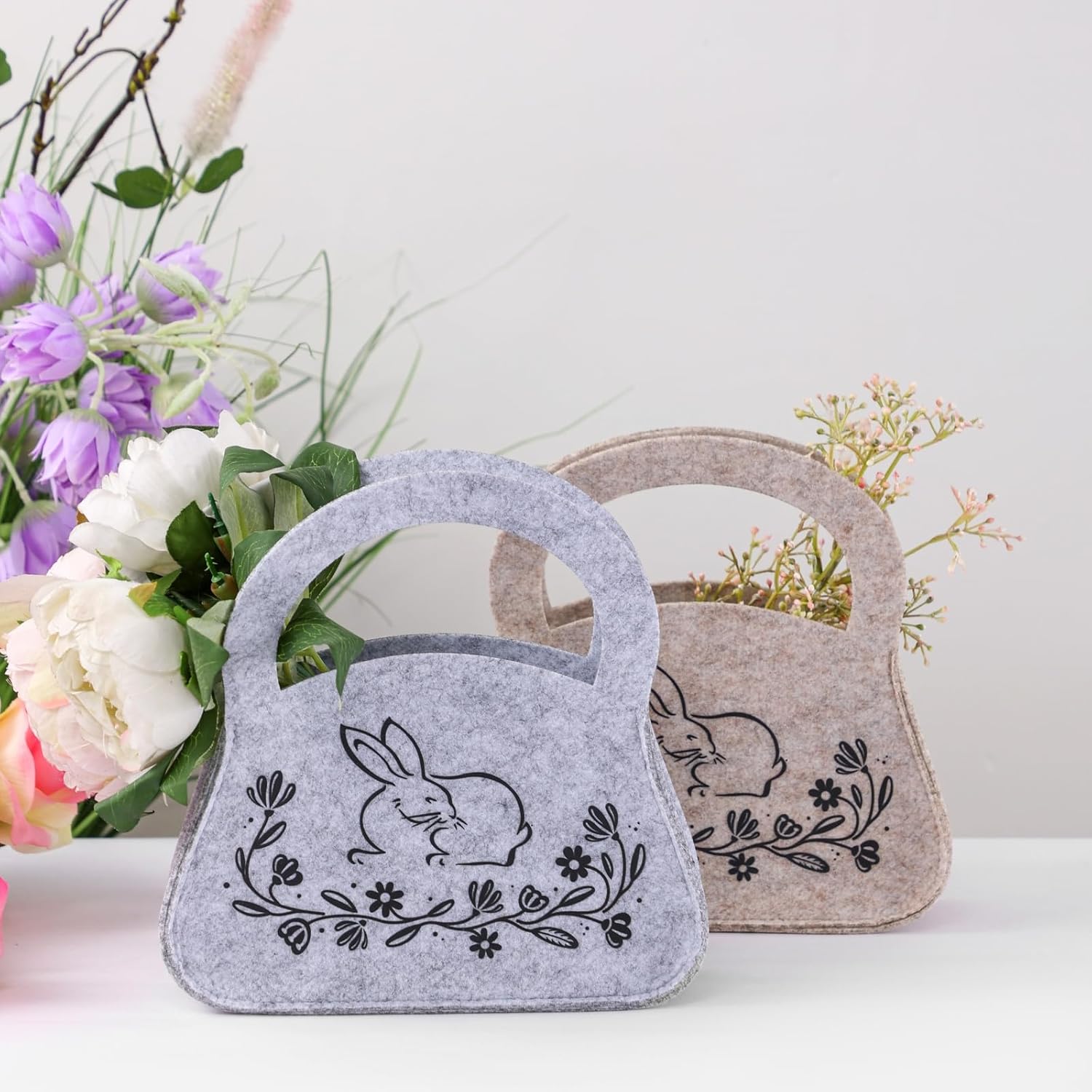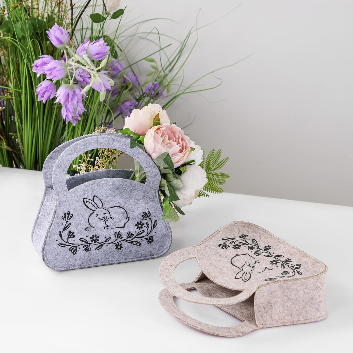 Geburtstags-Präsentkörbe – Geschenktüten zu Ostern, 2er-Set, mit Henkel, Ostertasche aus Filz, Osterkörbchen, Geschenkkorb, Hasenblumen, Filztaschen, Stofftaschen, Deko-Geschenk, Ostern, Frühling, Geburtstag, Familie, Freunde