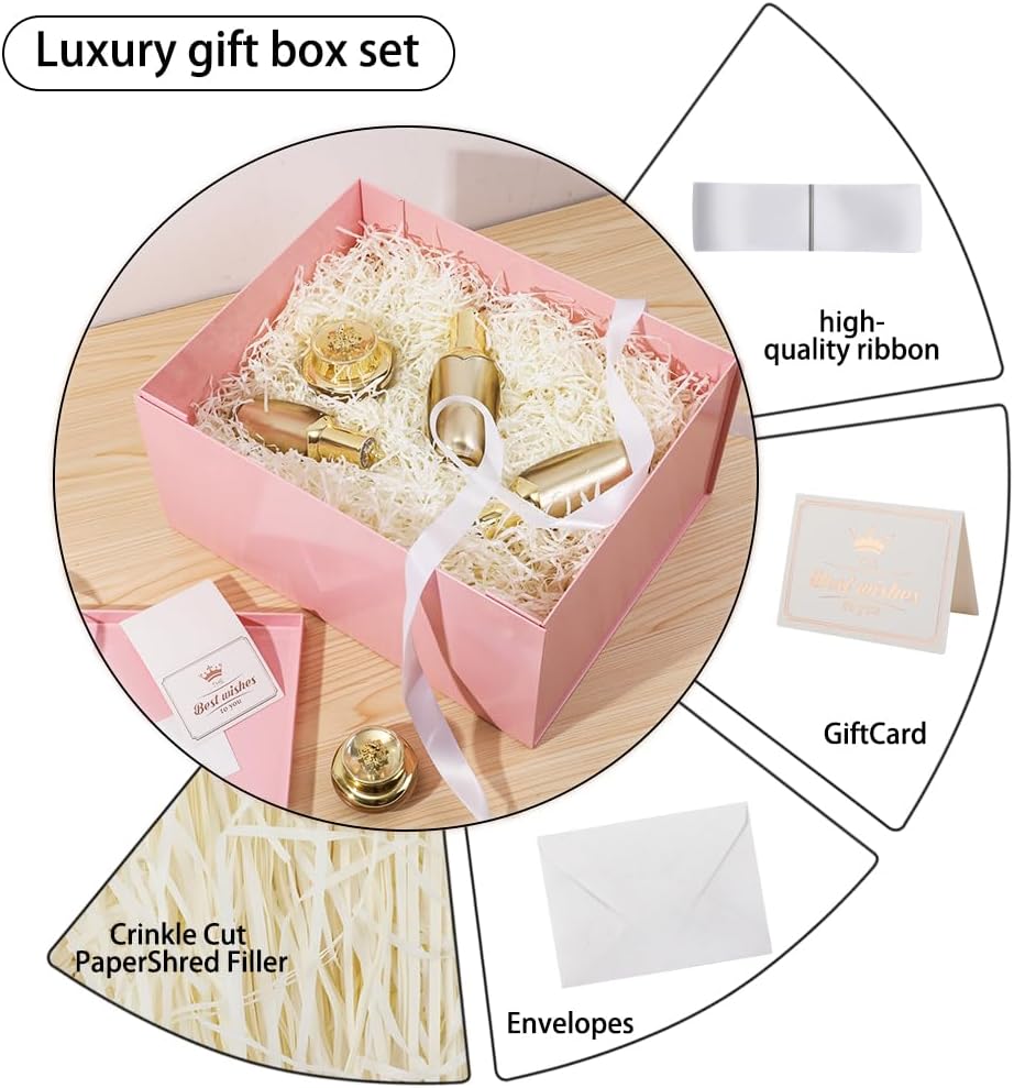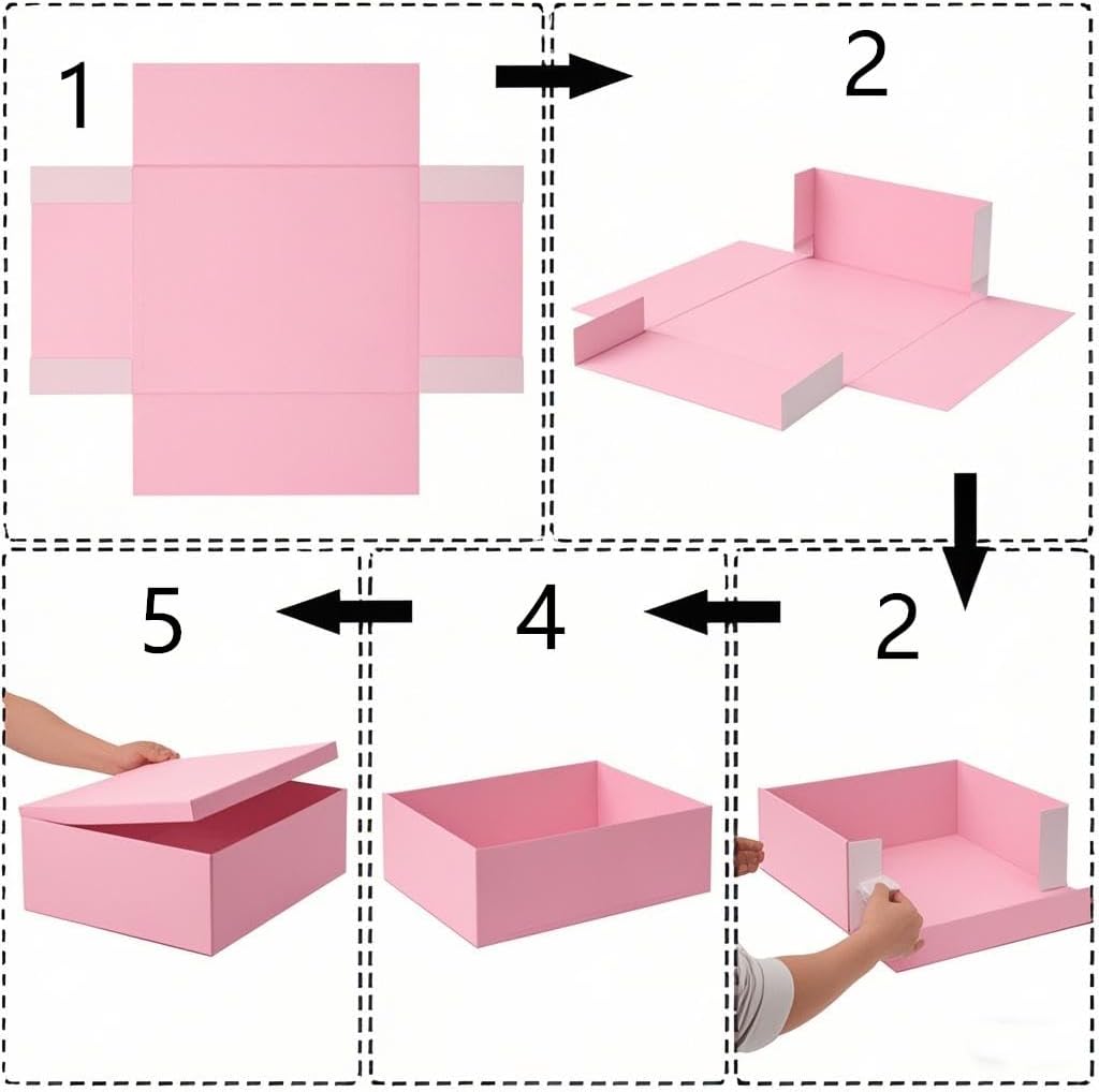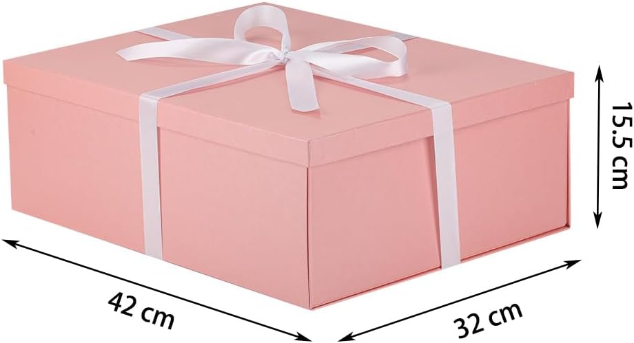 Geburtstags-Präsentkörbe – Große rosa Geschenkbox, 42 x 32 x 15,5 cm, leere Geschenkbox, Geschenkbox für Geburtstag, Hochzeit (inkl. Schleife, Seidenpapier, Umschläge und Karten)
