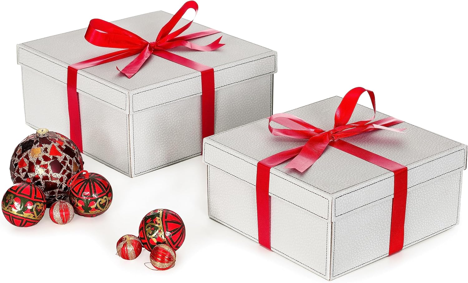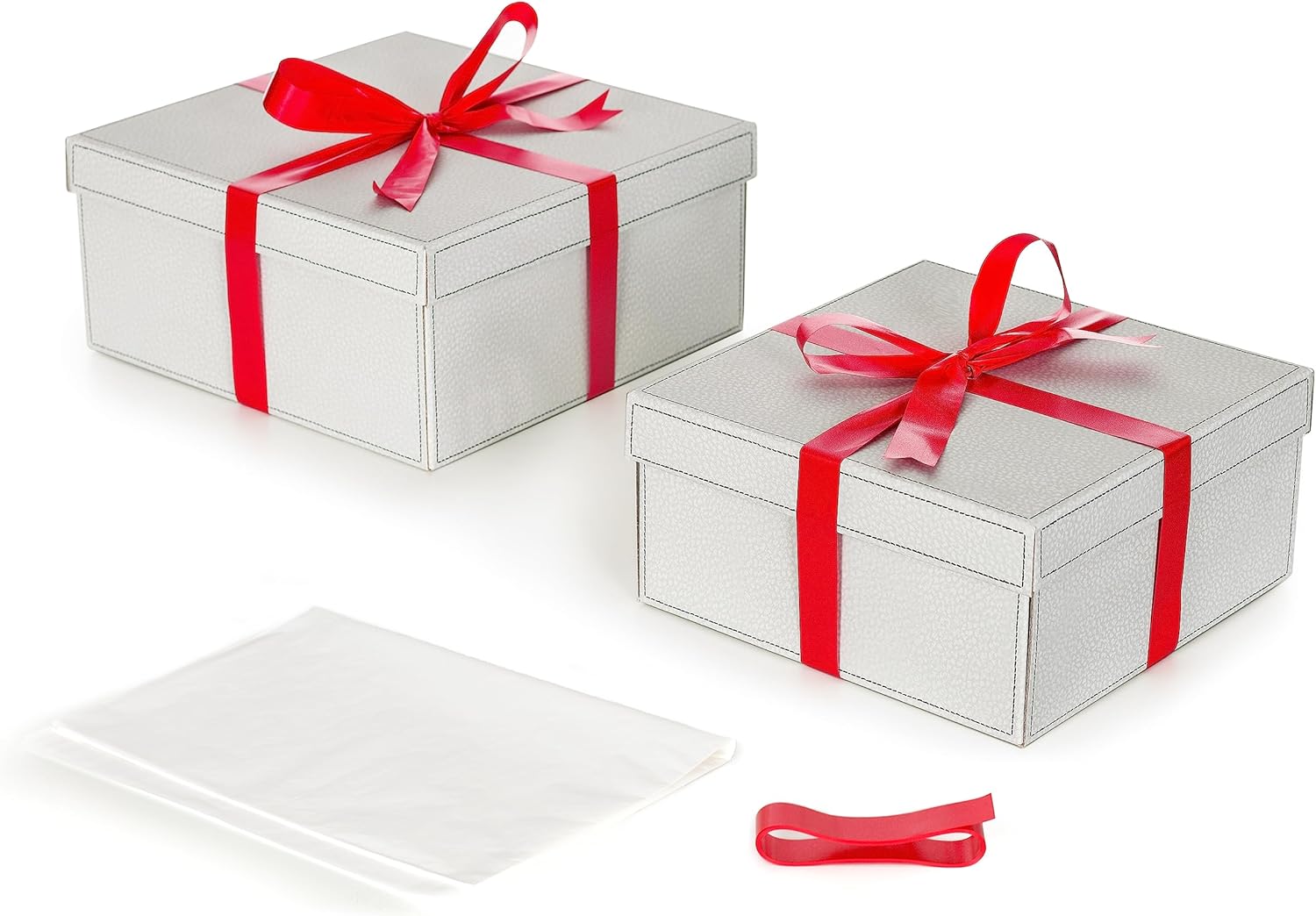 Geburtstags-Präsentkörbe – Lavatelli Geschenkbox mit Schleife, mit Deckel, mit Schleife und Seidenpapier, Set mit Geschenkboxen aus Karton für Hochzeit, Geburtstag, Weihnachten, Jubiläum, 2 Stück, verschiedene Größen