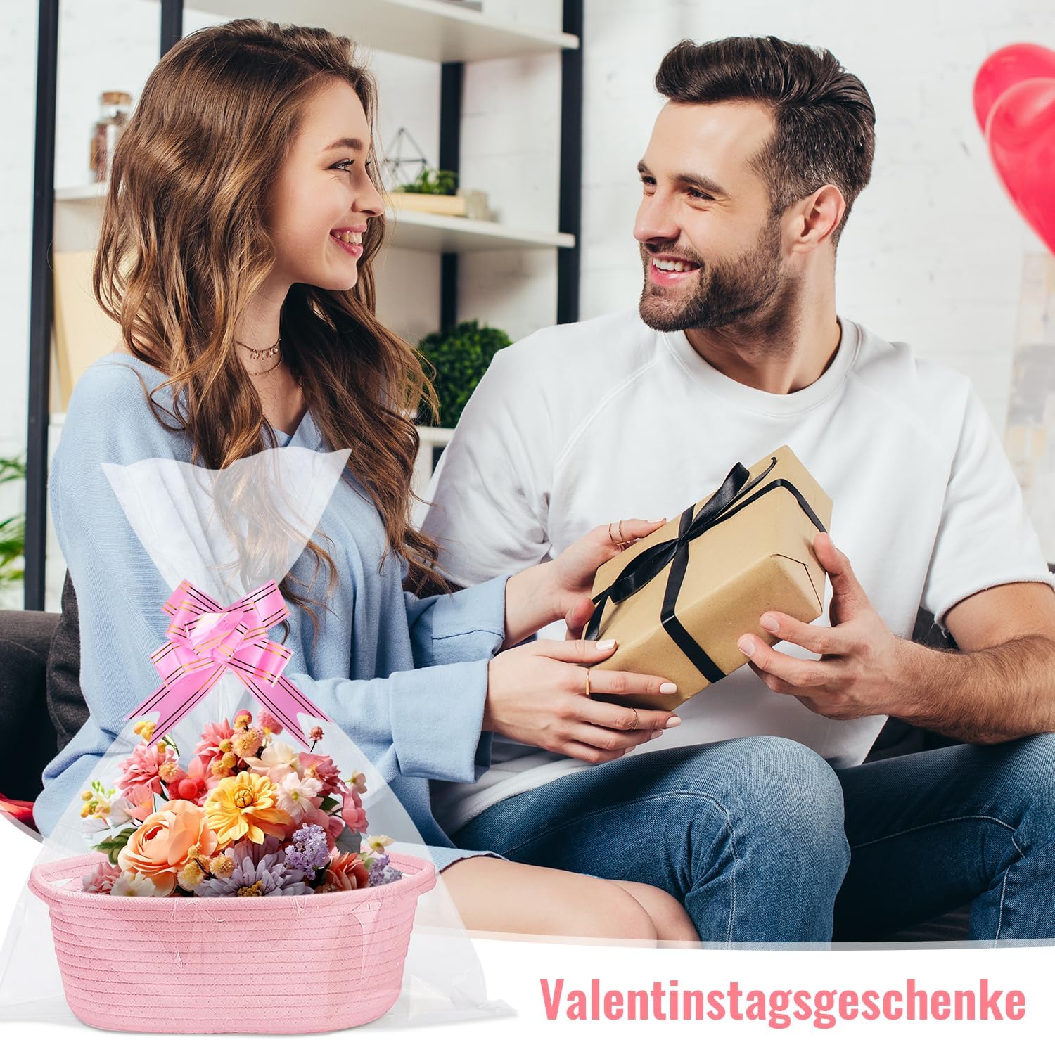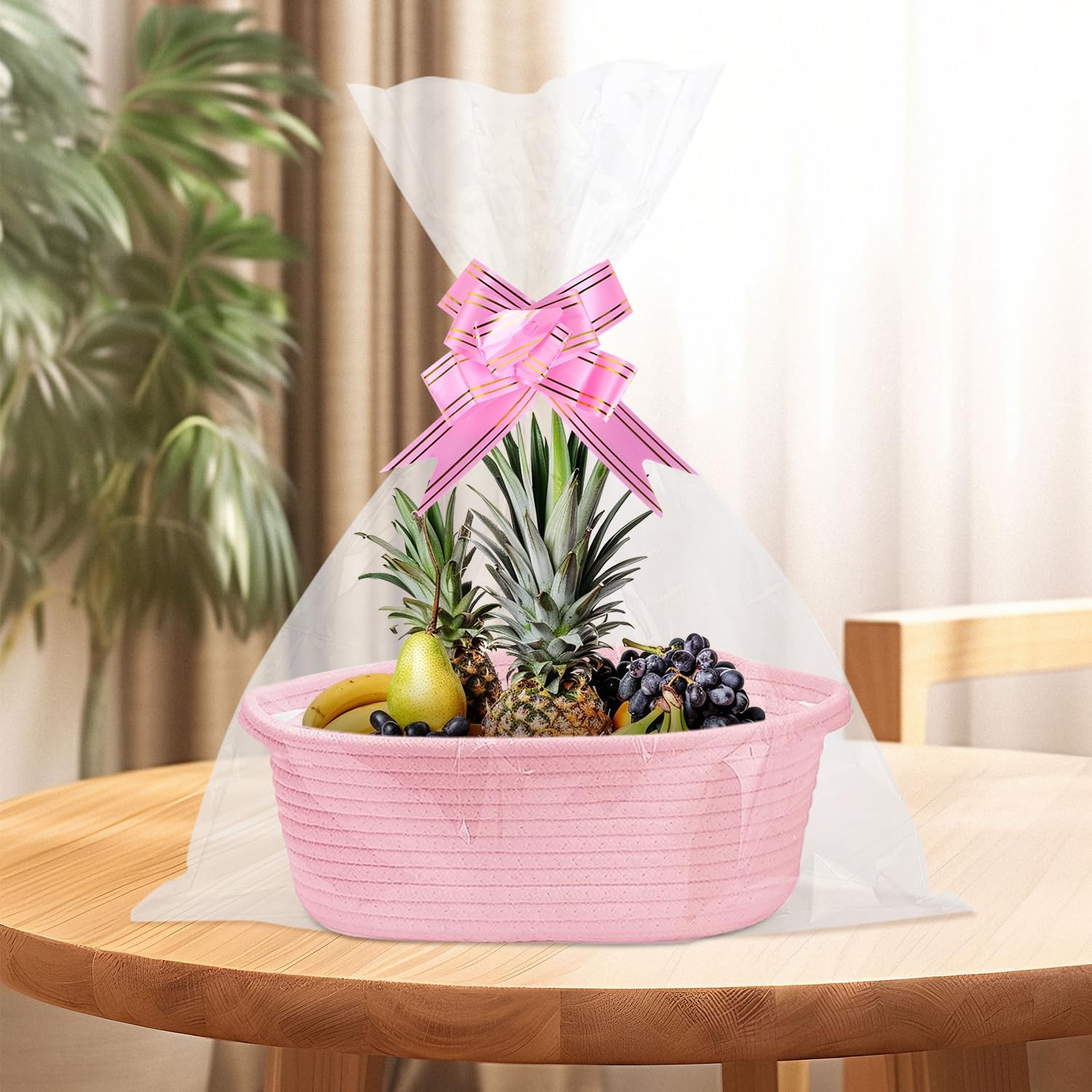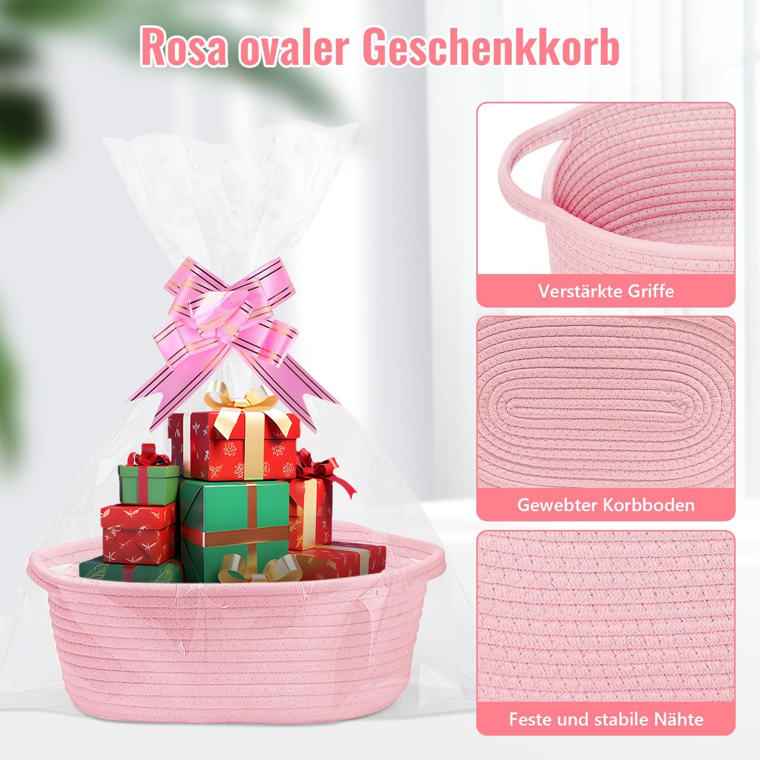 Geburtstags-Präsentkörbe – Leerer Geschenkkorb, 30 x 20 x 12 cm, Geschenkkorb, leerer Korb für Geschenke mit transparenten Geschenkfolienbändern und Grußkarte für Geburtstage, Hochzeiten, Babypartys, Ostern, Halloween, Erntedankfest, Weihnachten
