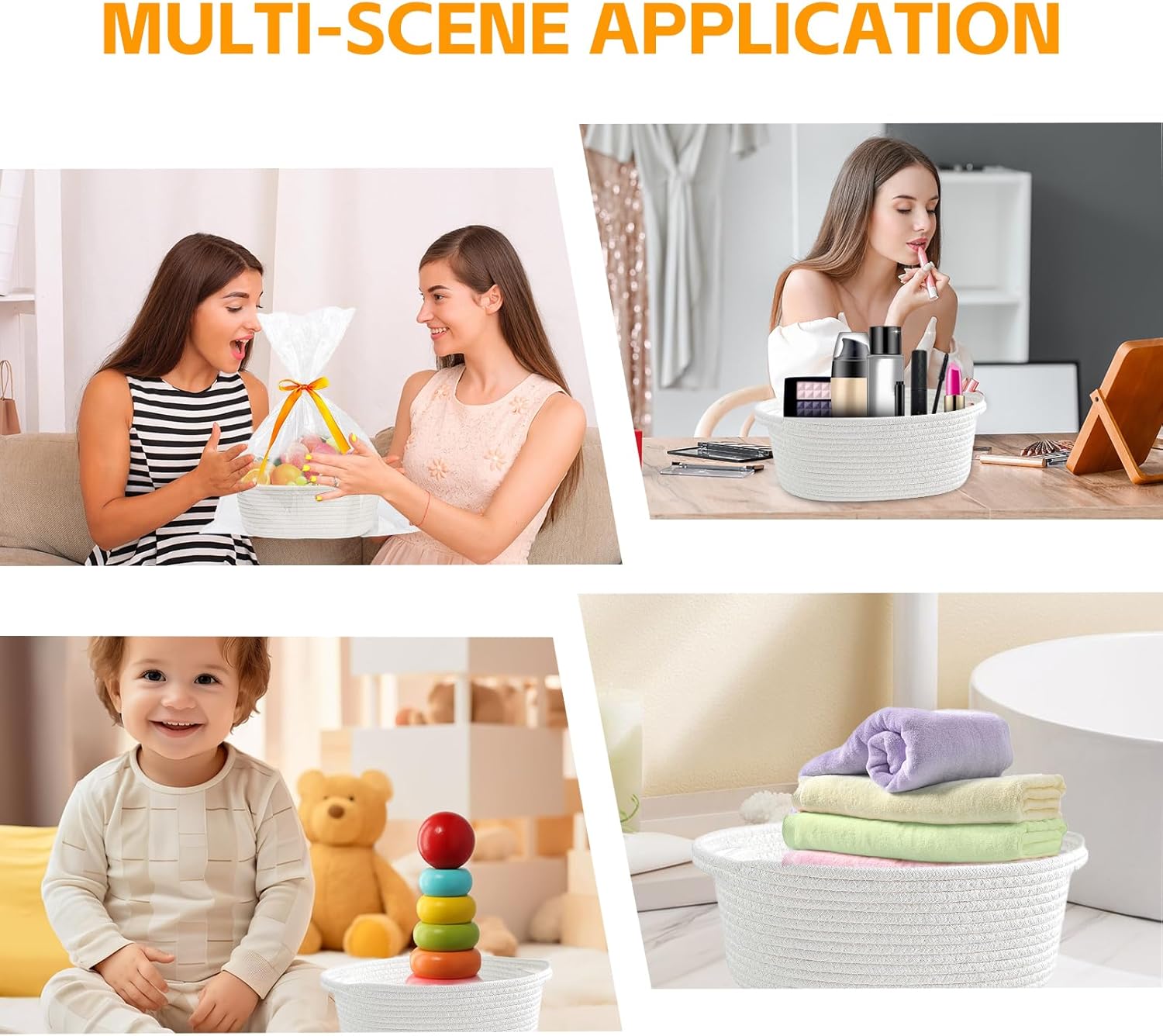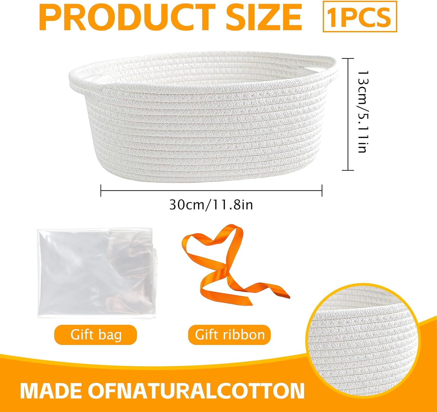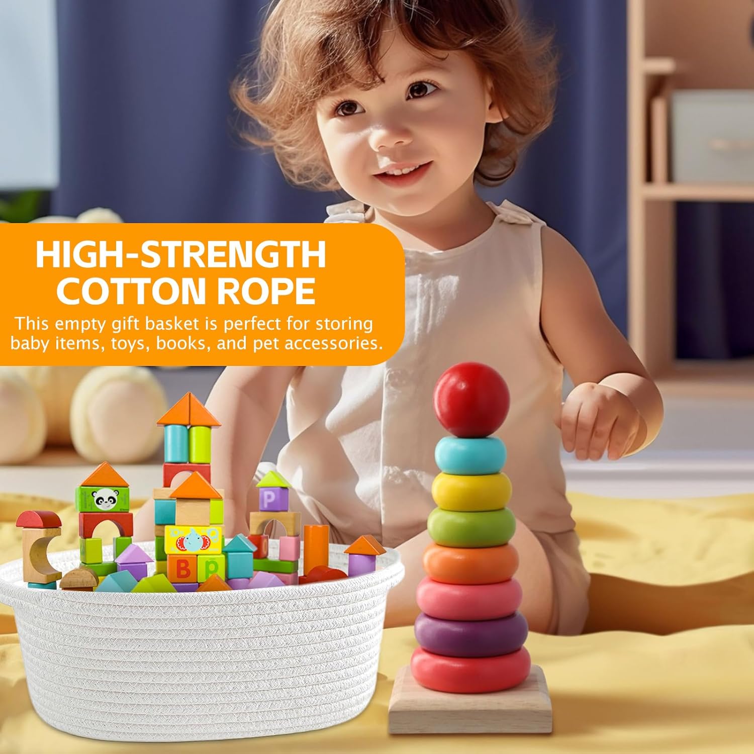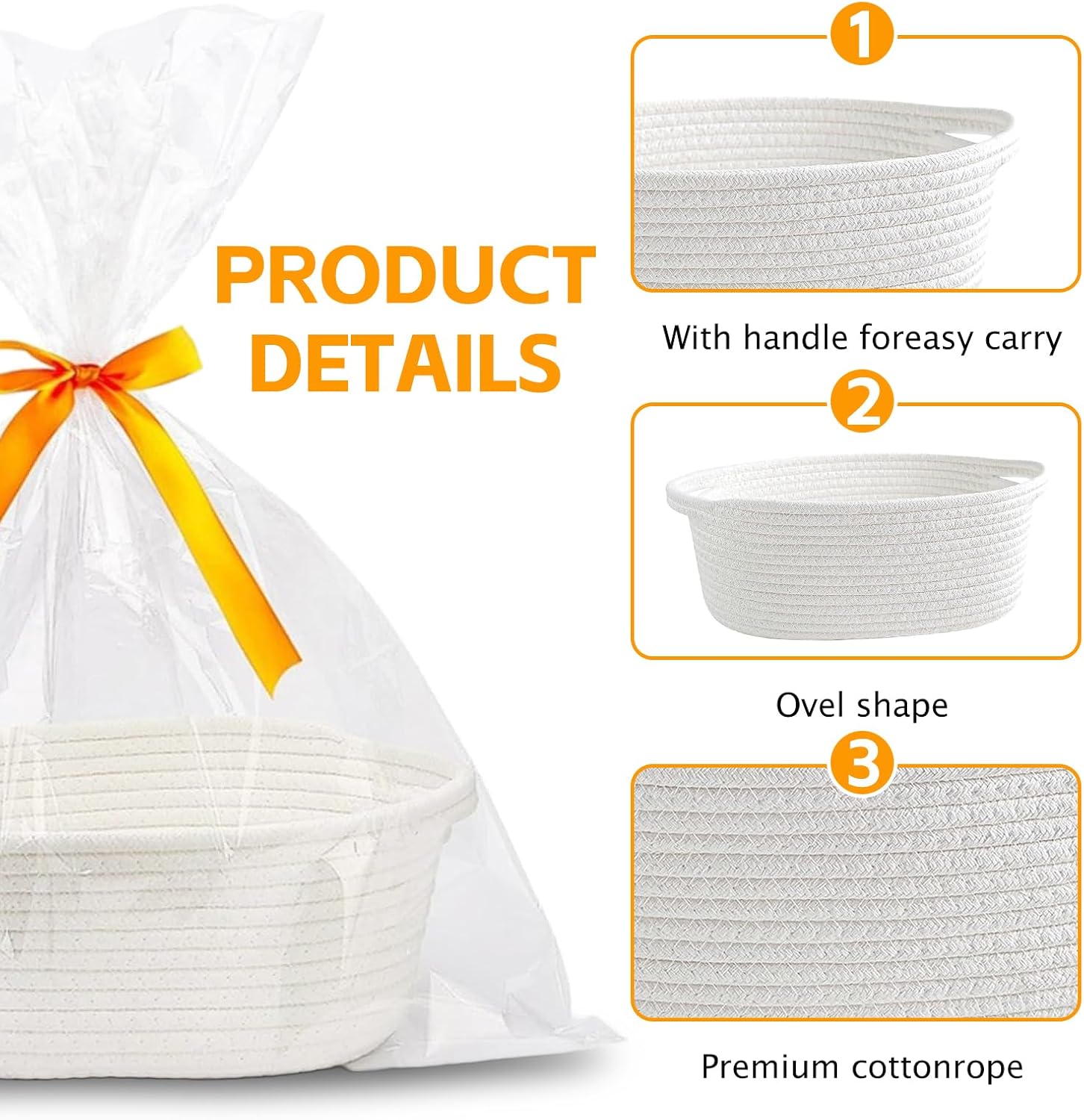 Geburtstags-Präsentkörbe – Leerer Geschenkkorb, geflochtener Baumwollkorb mit Geschenktüten und Bändern für Hochzeit, Aufbewahrung, Geburtstag, Babyparty (weiß)