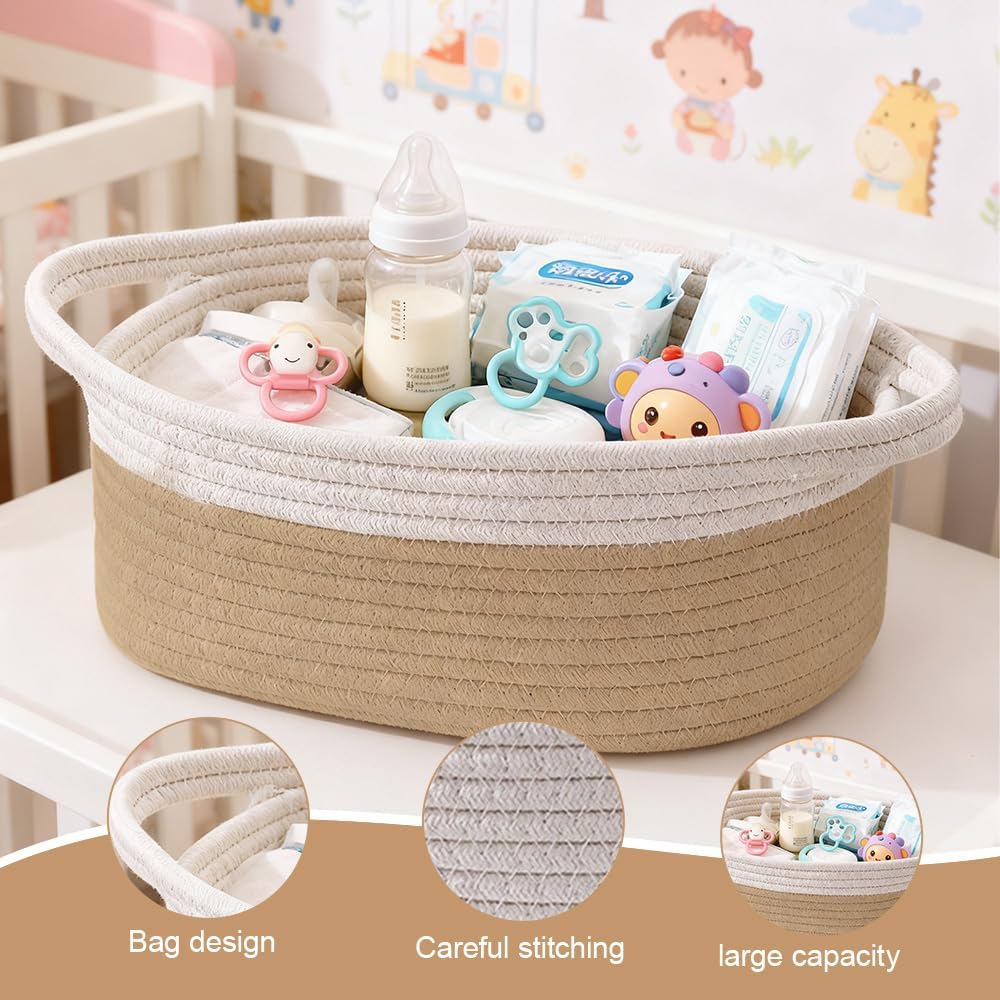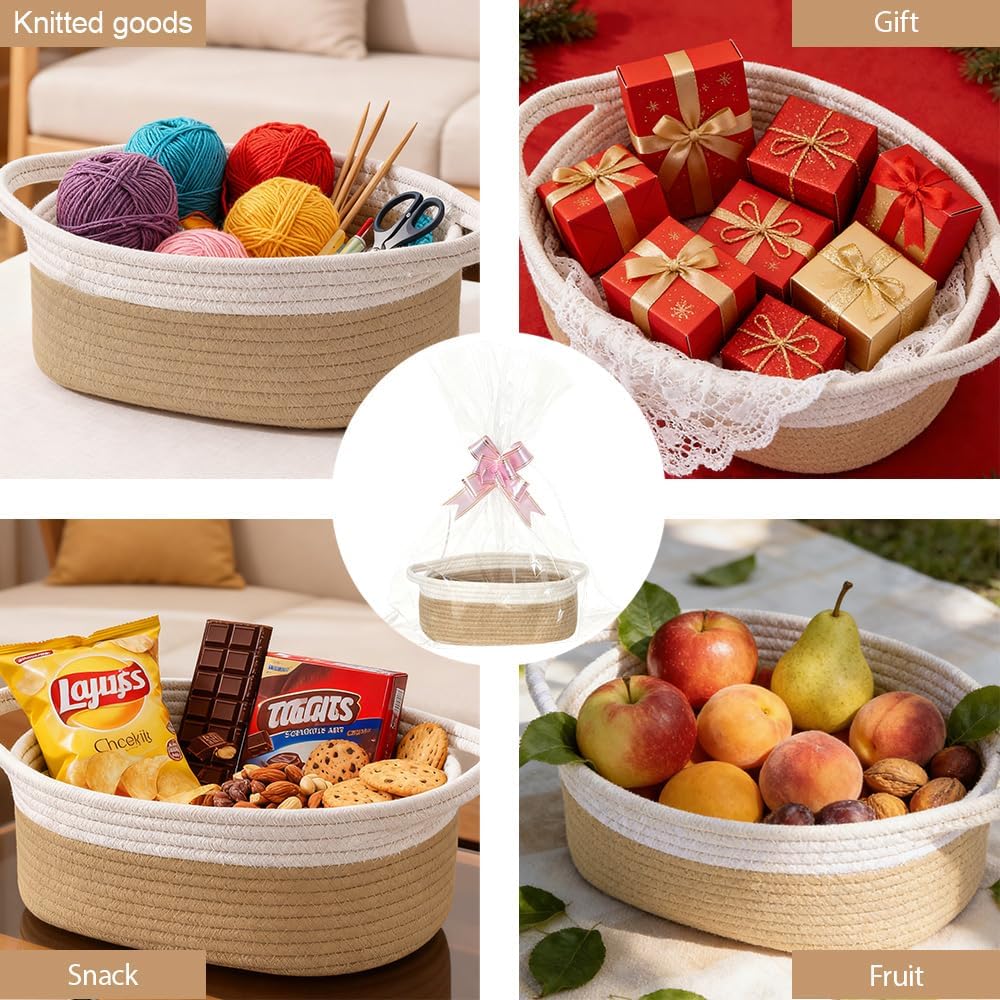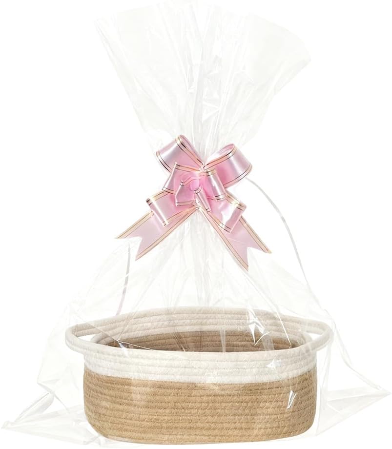 Geburtstags-Präsentkörbe – Leerer Geschenkkorb, geflochtener Korb für Geschenke mit Geschenktüten und Bändern, großer geflochtener Korb für Geschenke mit Griff für Geburtstag, Hochzeit, Babyparty, Erntedankfest, Weihnachten (Khaki-Weiß)