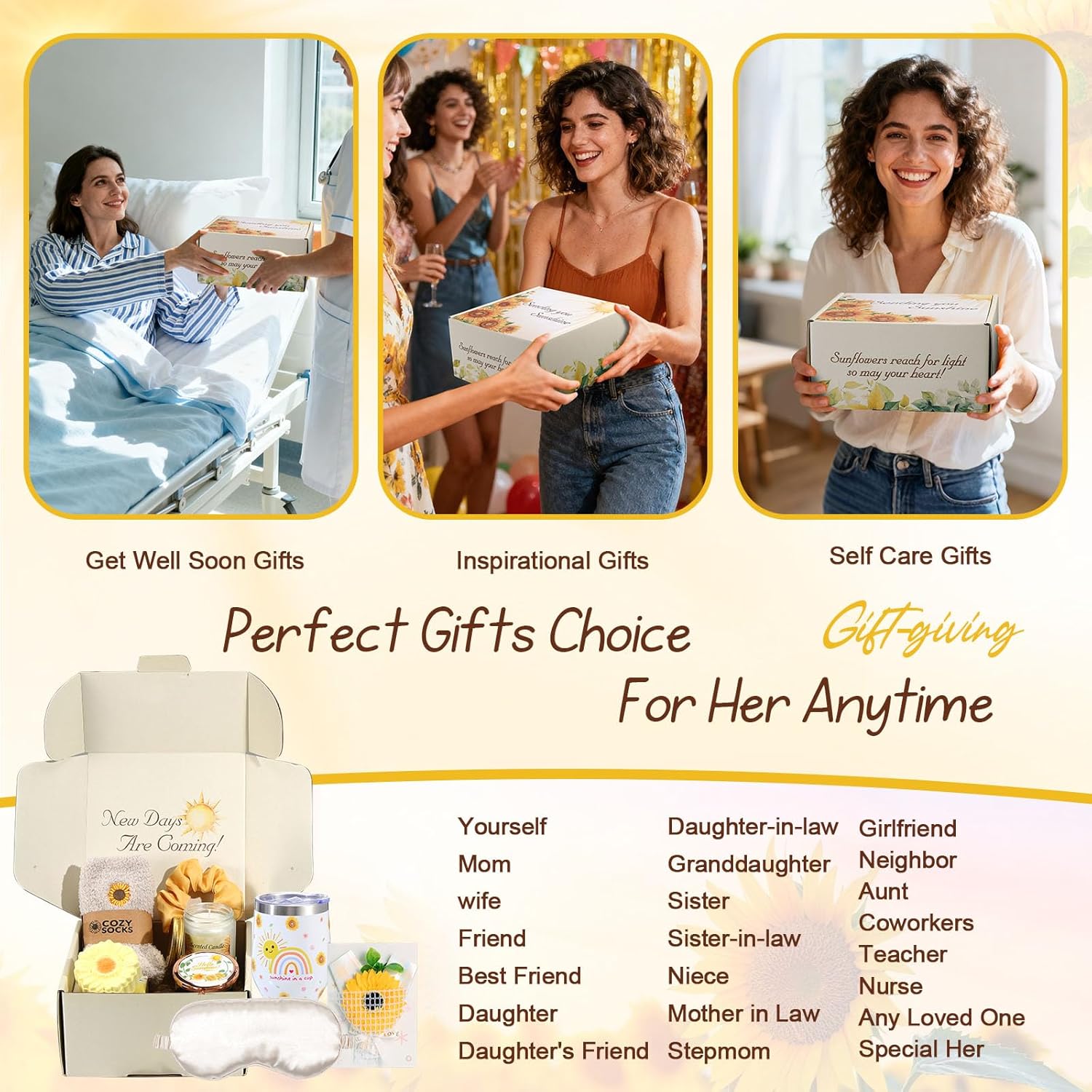 Geburtstags-Präsentkörbe – Sonnenblumen-Geschenke für Frauen, Geburtstagskorb, Verwöhngeschenke für Frauen, Genesungsgeschenke, Geschenkkörbe, Selbstpflege, entspannendes Geschenk, Weihnachtsgeschenke für sie, Mutter, Ehefrau, Beste