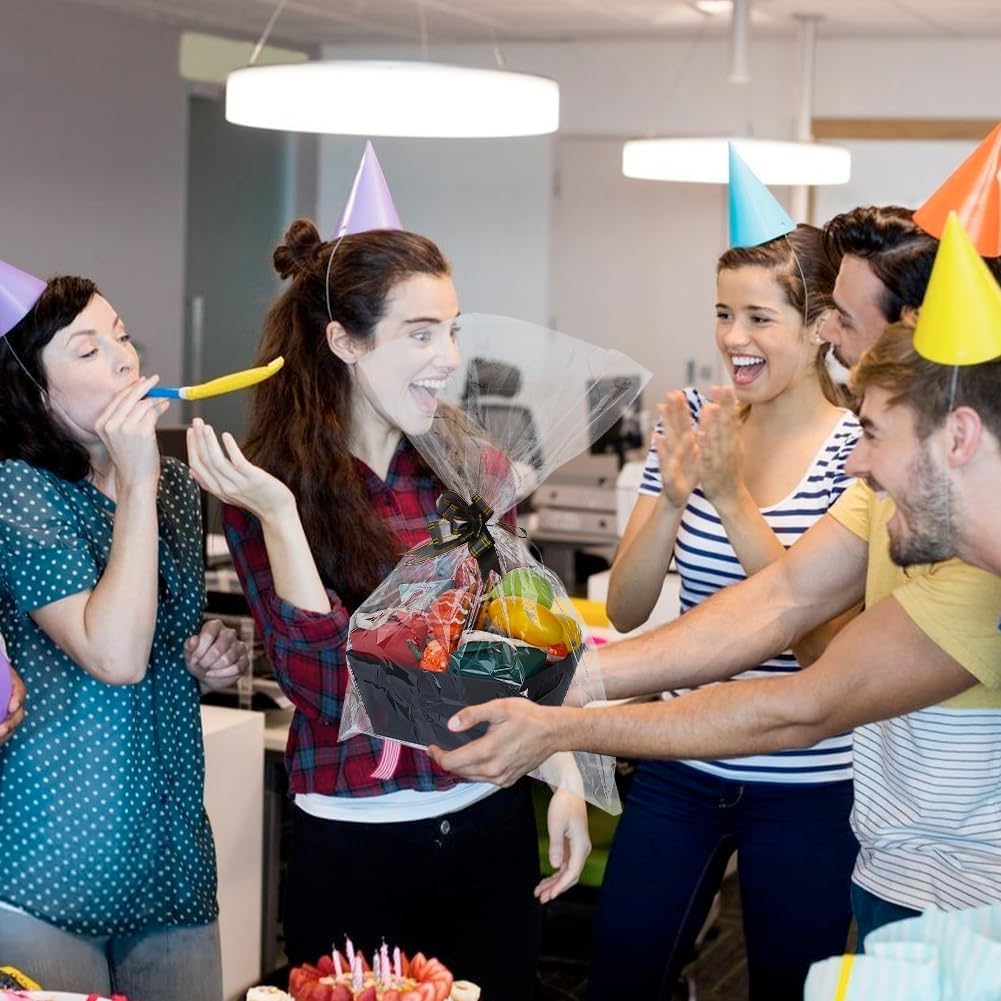 Geburtstags-Präsentkörbe – SUPERFINDINGS 6 Stück schwarze Pappkörbe, Geschenkkörbe, leeres Set mit Plastiktüten und Schleifen, Geschenk-Aufbewahrungsboxen aus Kraftpapier, stabile Bastelarbeiten, Geschenkkörbe für Weihnachten, Geburtstag, Hochzeit