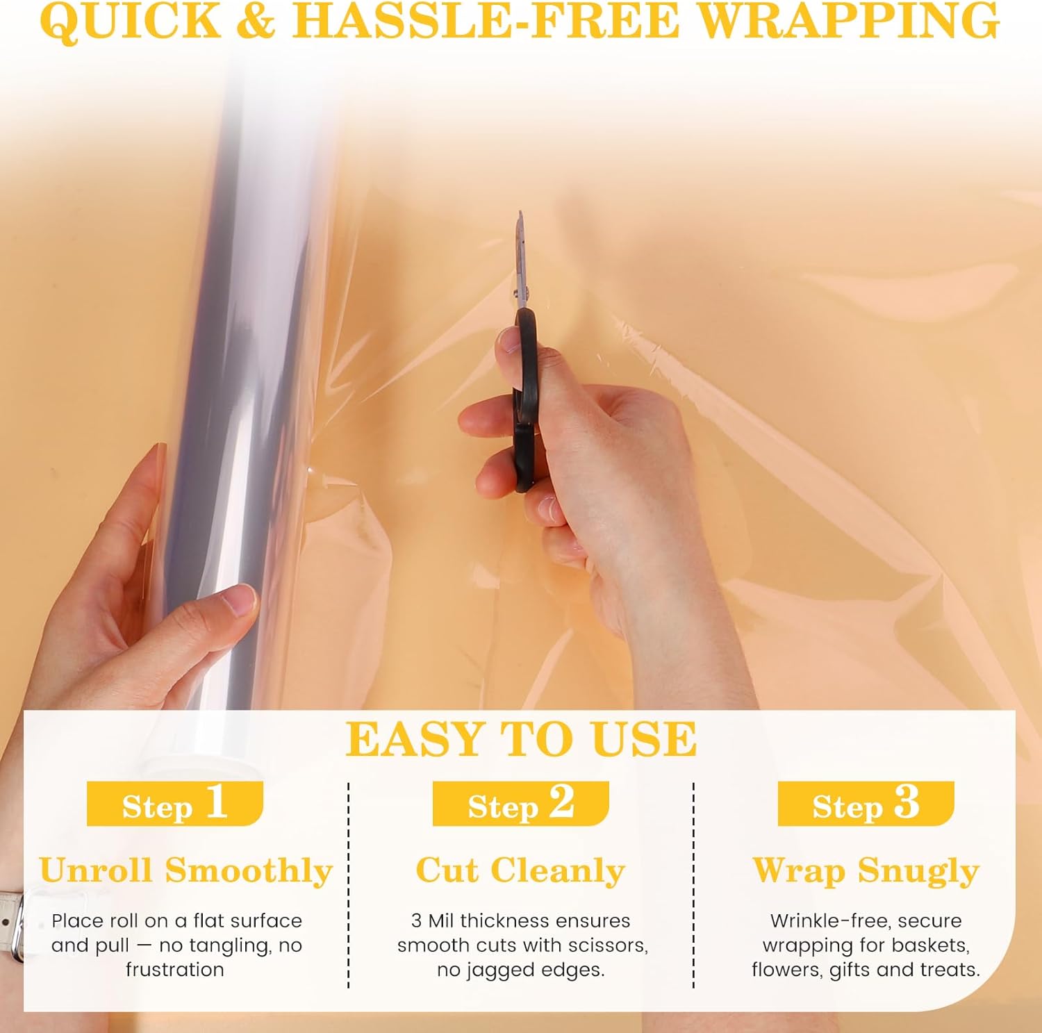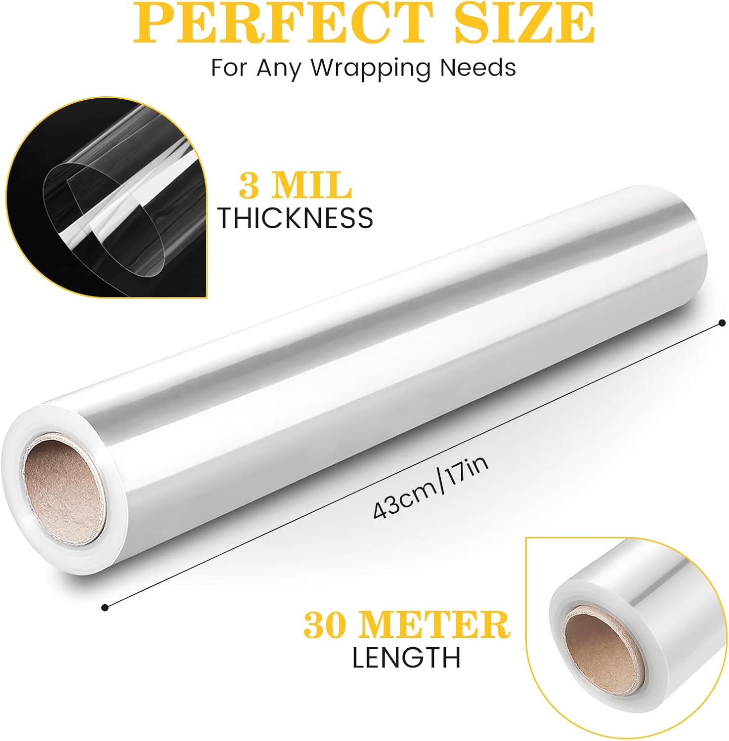 Geburtstags-Präsentkörbe – Transparente Folien, Geschenkpapierrolle, Klarsichtfolie 43 cm x 30 m, 3 ml, Geschenkfolie transparent für Geschenkkörbe, Hochzeit, Geburtstag, Süßigkeiten, Blumen und Partydekoration