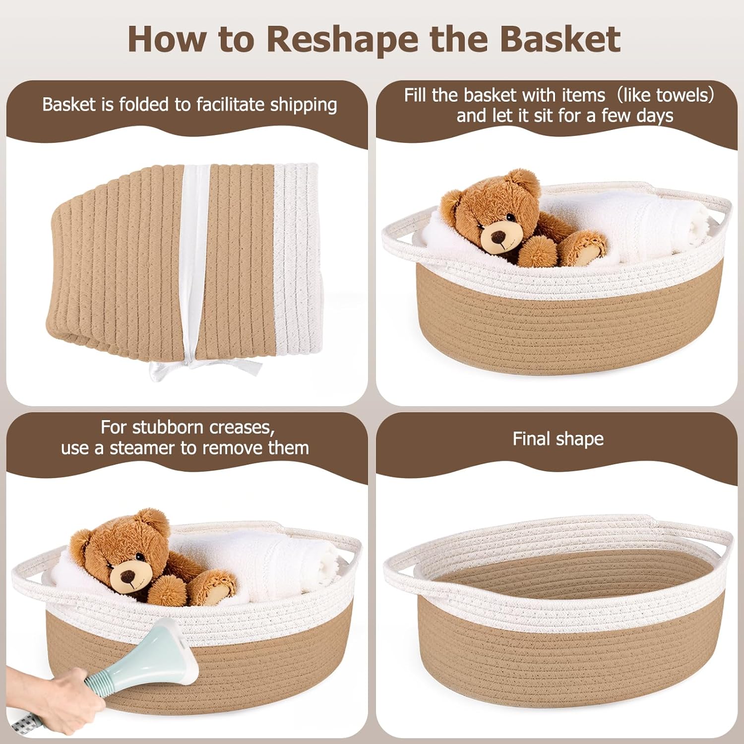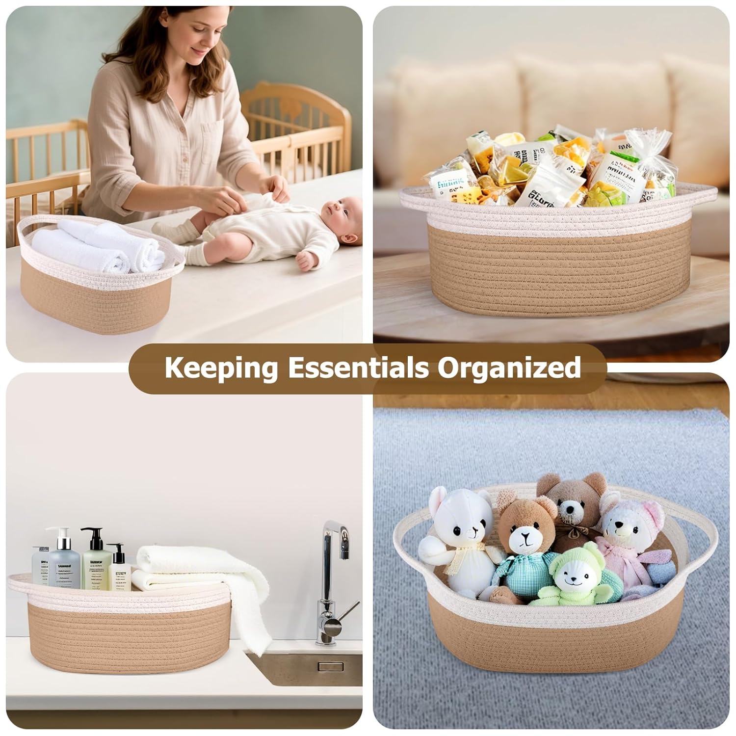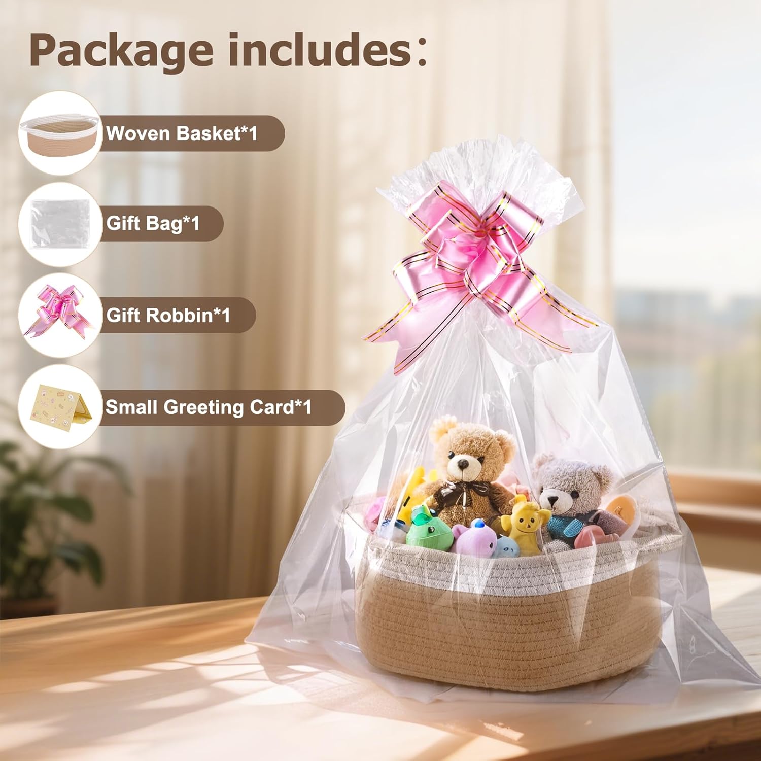 Geburtstags-Präsentkörbe – Weißer kakifarbener kleiner geflochtener Moses-Korb mit Geschenktüten und Bändern