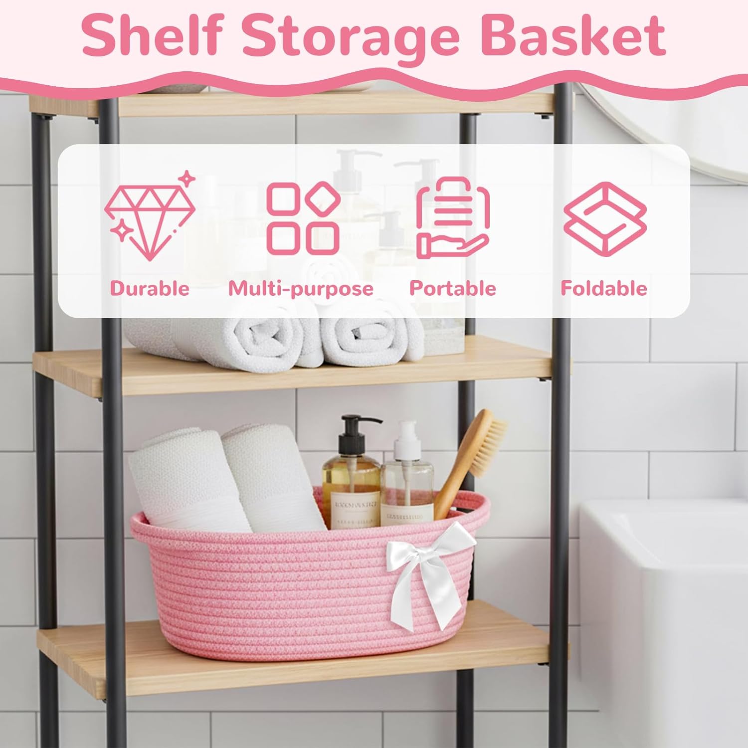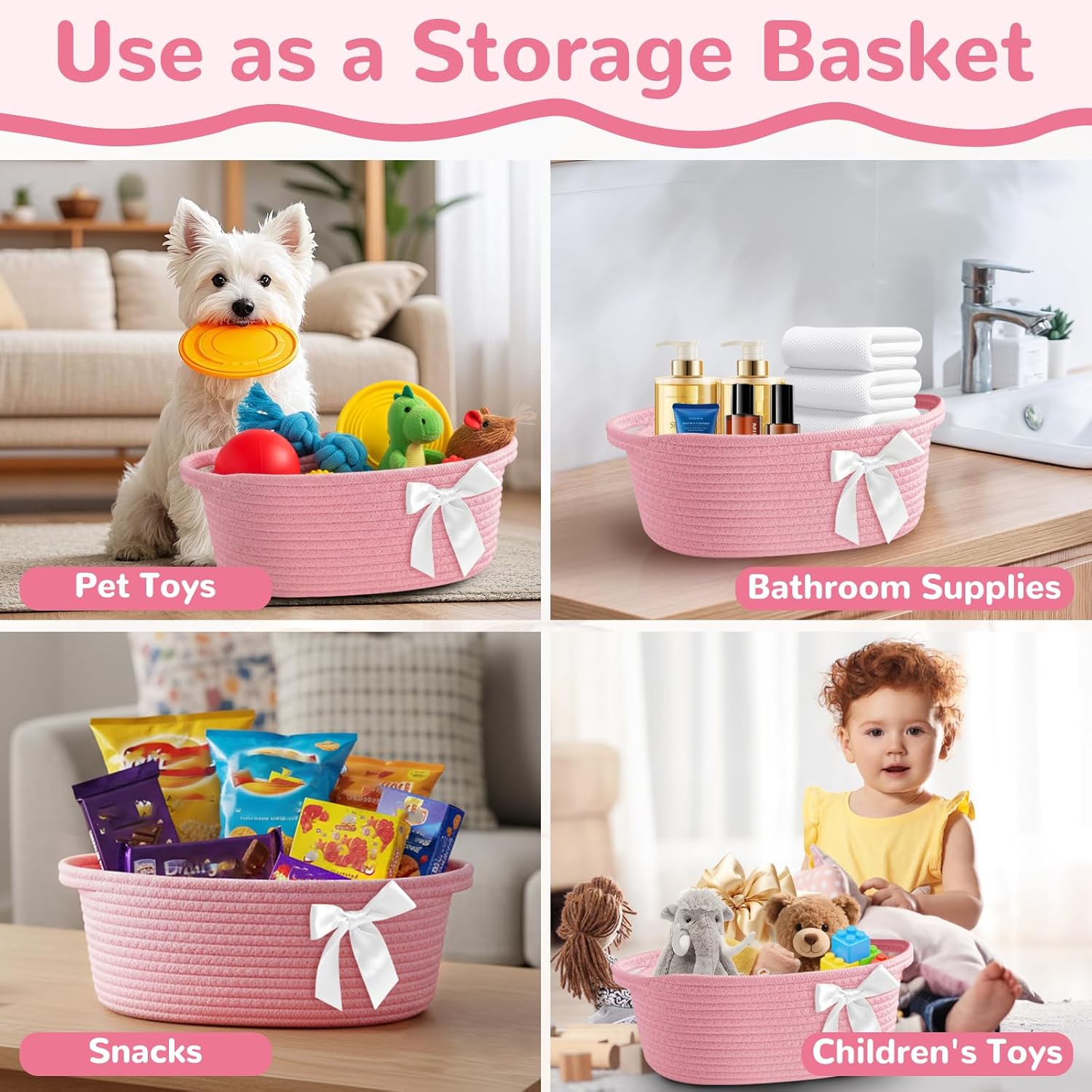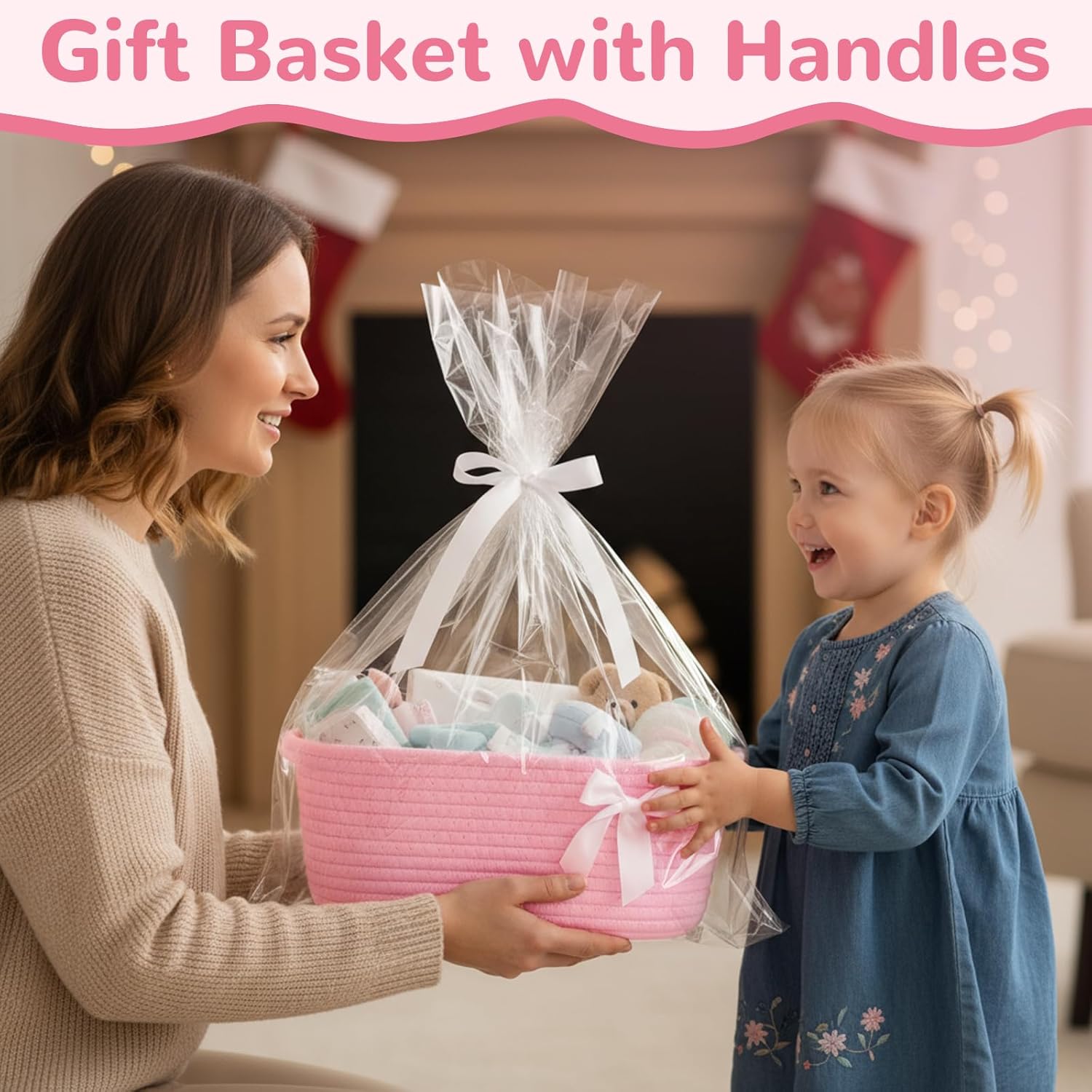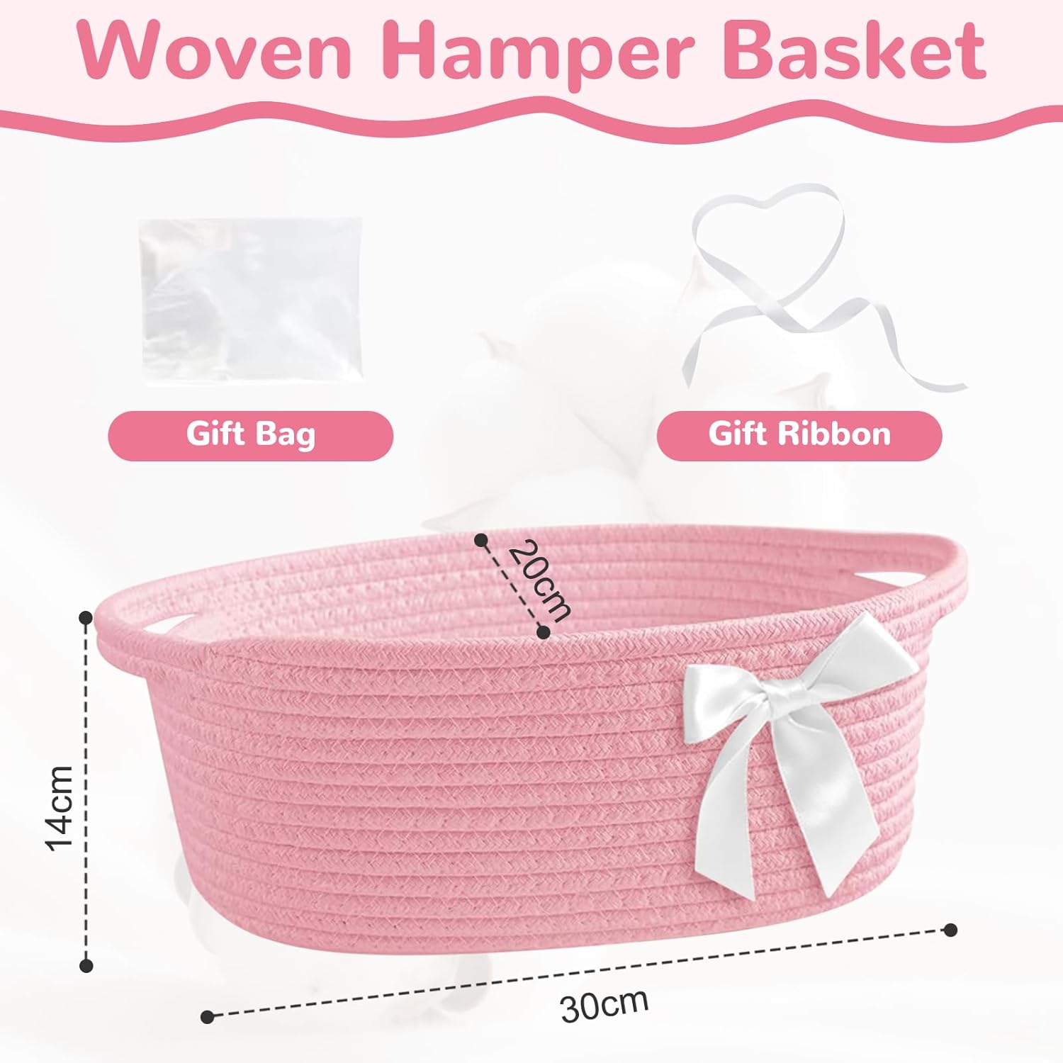 Geburtstags-Präsentkörbe – Yiomxhi Geschenkkorb, leerer Geschenkkorb mit Zellophanbeutel und Schleife, geflochtene Korbaufbewahrung für Geschenke mit Griffen für Babyparty, Hochzeit, Geburtstag, Weihnachten (Rosa)