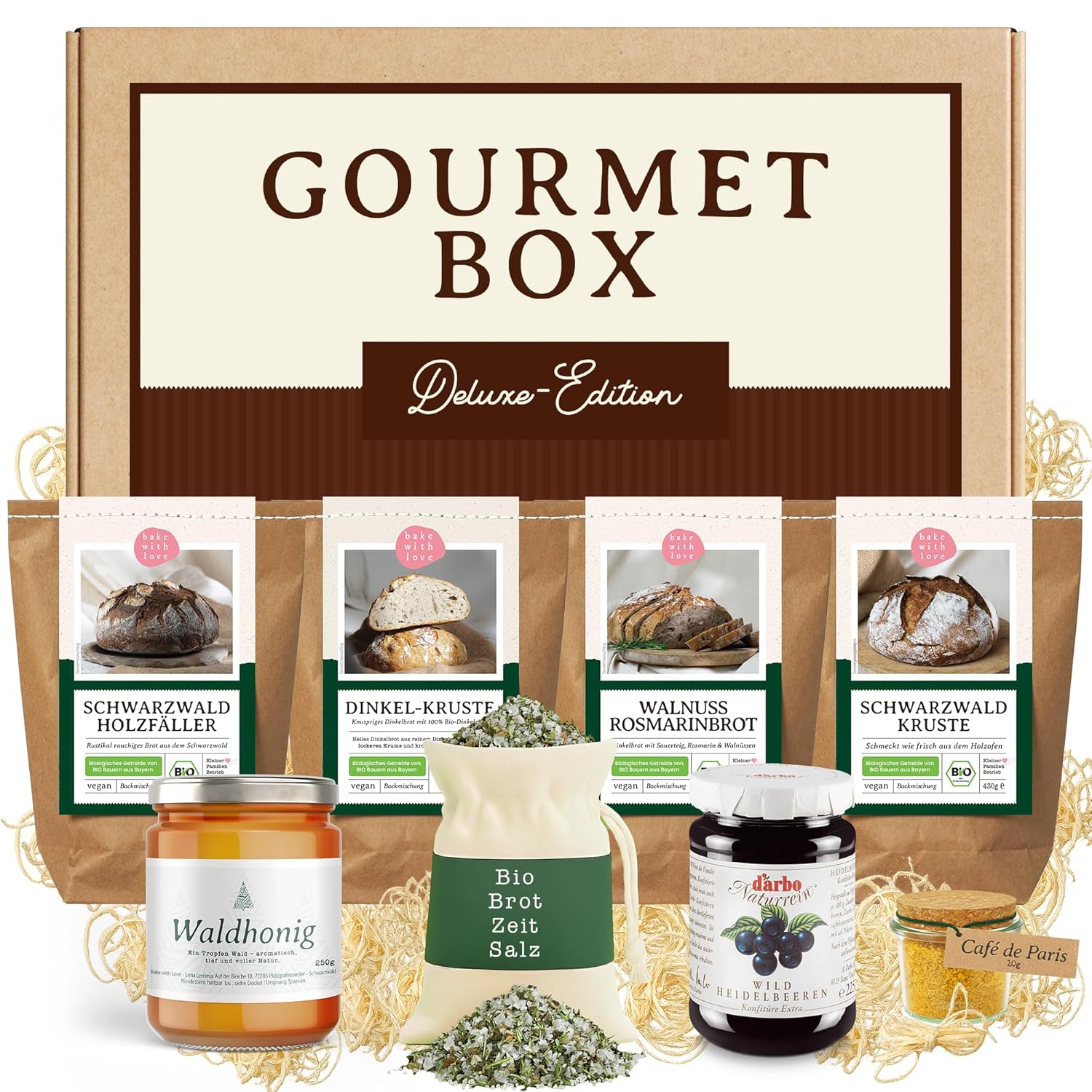 Wurst-Präsentkörbe – BAVAREGOLA Südtiroler Bauerntoast – Party-Snack-Set mit 6 Vinschgauer Broten, 200 g Südtiroler Speck g.g.A. & 250 g Bauernkäse – Original Südtiroler Spezialitäten für Genießer