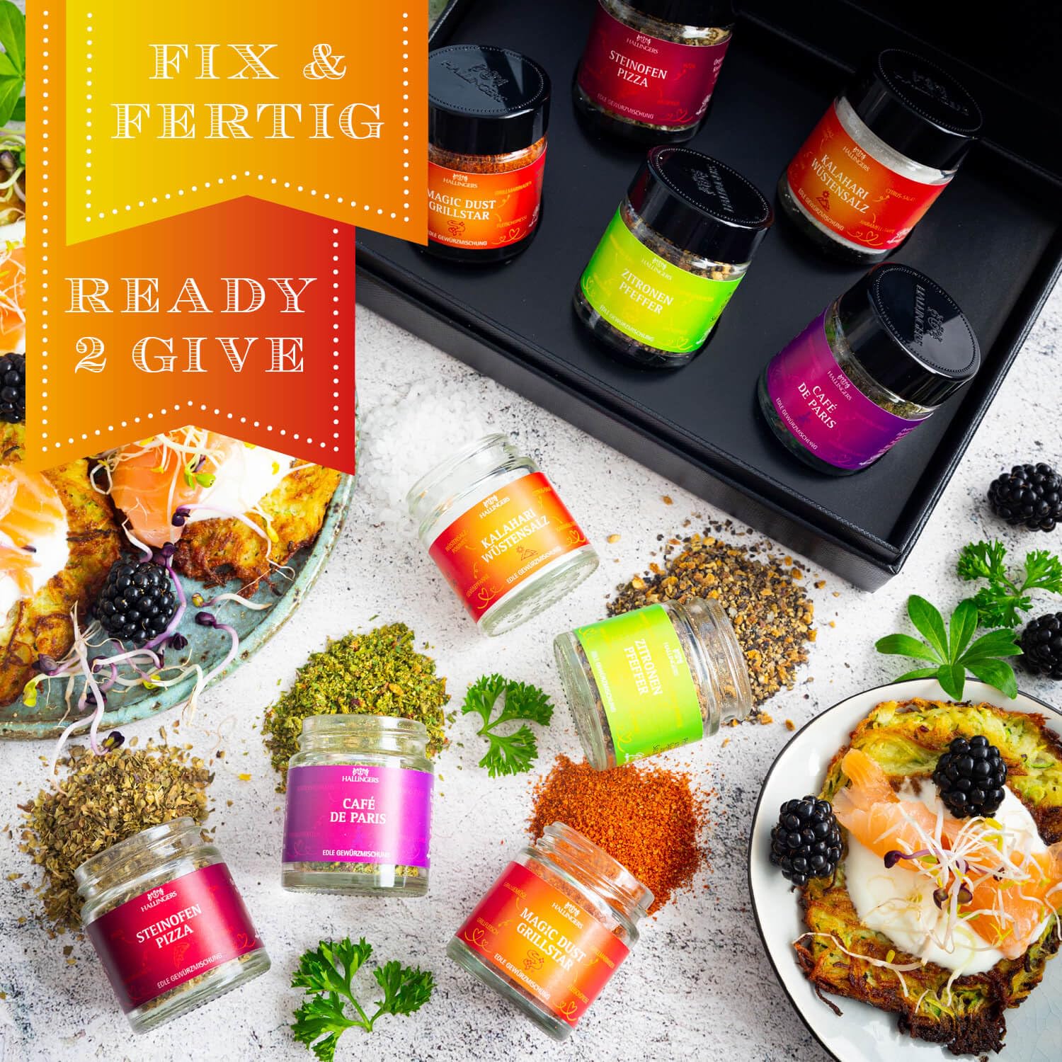 Wurst-Präsentkörbe – Hallingers Apologies – Gewürz-Geschenkset handgefertigt, 5 Gewürze aus aller Welt (Set) – Geschenk zum Muttertag & Geschenkideen zum Vatertag | Glückwünsche zum Geburtstag, neues Zuhause, Jubiläum, Freundschaft
