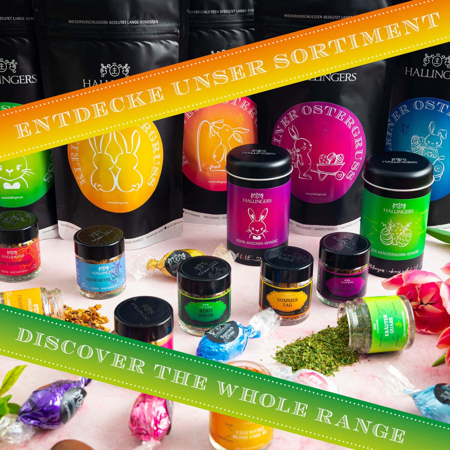 Wurst-Präsentkörbe – Hallingers Genuss Manufaktur Gewürzgeschenk Ostern – Ostergeschenke für Osterkörbe, Gewürzmischung für Salatschüsseln Quinoa & Dressings, edle Geschenkbox „Knuspriges Ostersalatgewürz“