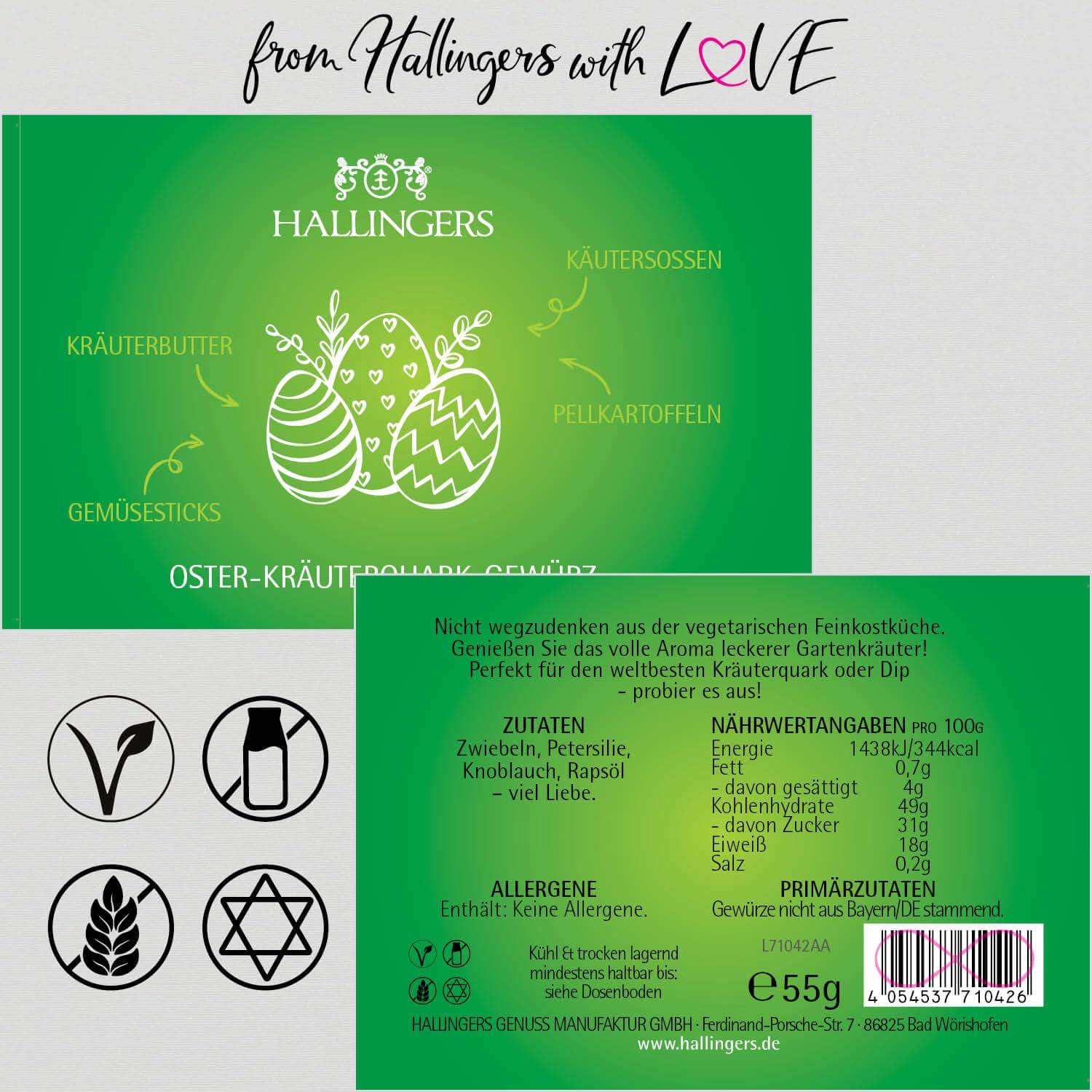 Wurst-Präsentkörbe – Hallingers Osterkräuterquarkgewürz – Ostergeschenke für Osterkörbe zu Ostern, Gewürzmischung für Quarksauce & Kräuterbutter (Dose) – Geschenk im Sommer & als perfektes Grillgeschenk | Glückwuns