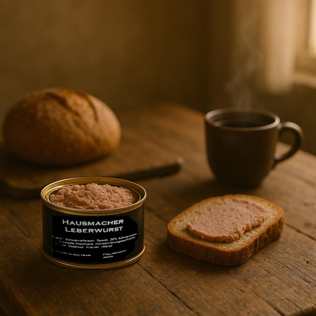 Wurst-Präsentkörbe – Hausmacher Premium Wurstset, 5 verschiedene Sorten, Leberwurst, Lyoner, Bierwurst, Schwartenstomen, Bratwurst, 400g-Dose, traditionelle deutsche Feinkost