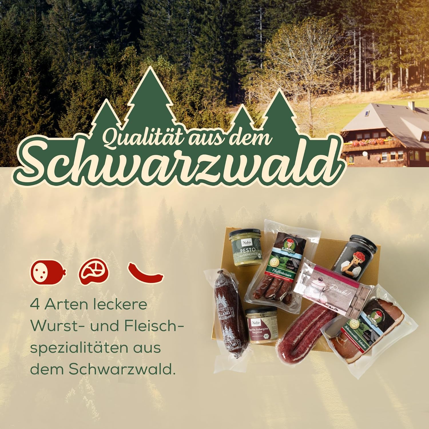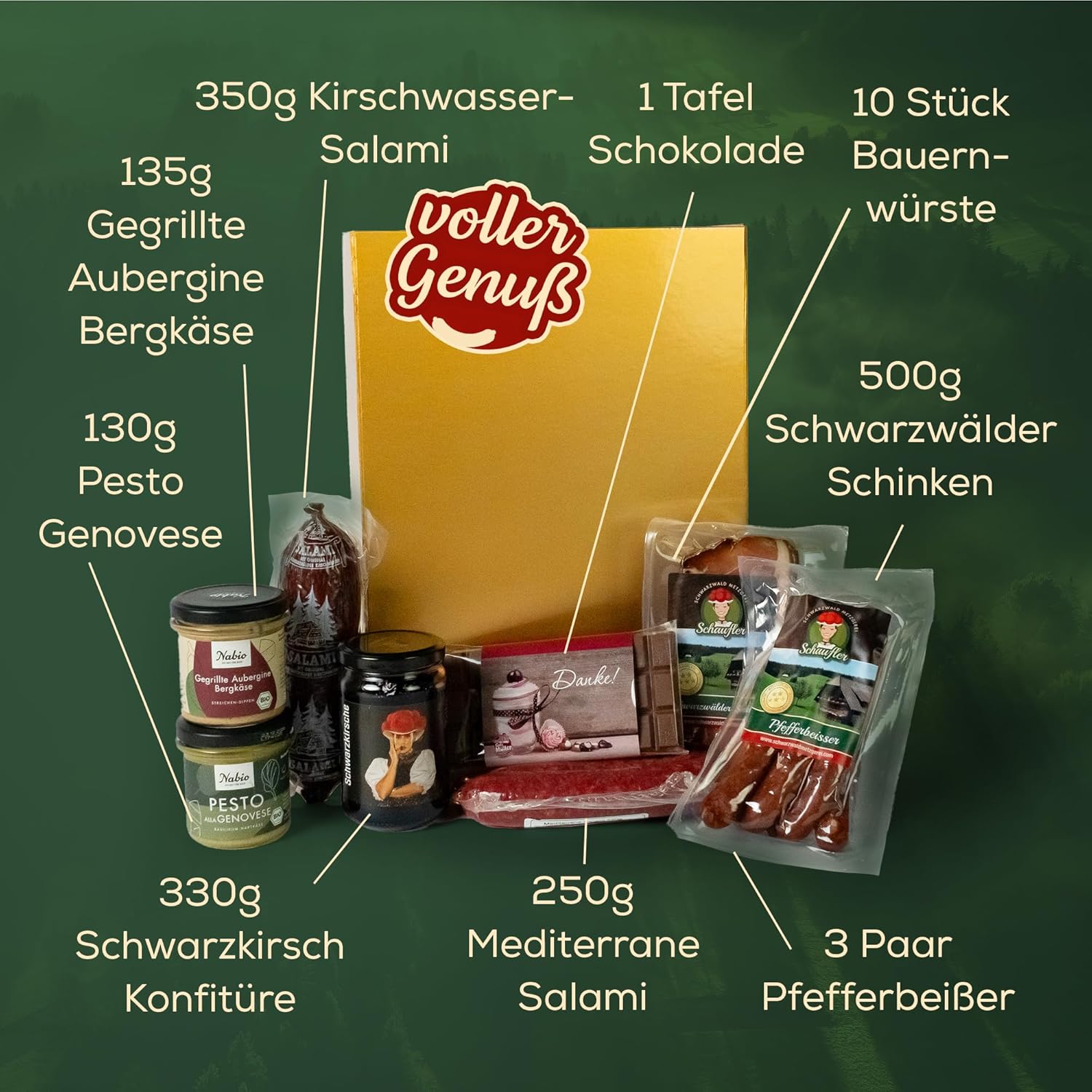 Wurst-Präsentkörbe – Schwarzwälder Metzgerei Dankeschön-Präsentkorb – Kulinarische Geschenkidee mit Schokolade, Aufstrich, Pesto & Salami – Schwarzwälder Feinkost