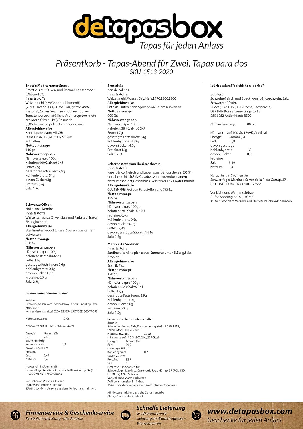 Wurst-Präsentkörbe – Spanische Geschenke, Serrano-Schinken, Pata Negra Chorizo, Pata Negra Salami, Sardinen, Oliven, Geschenkset