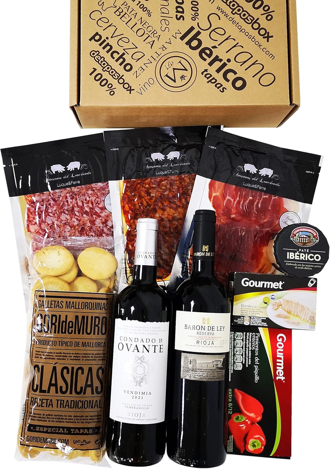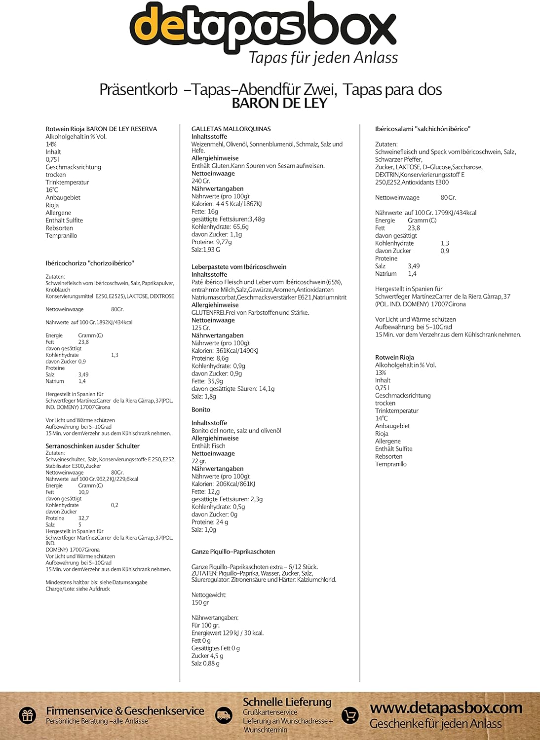 Wurst-Präsentkörbe – Tapas-Abend zu zweit mit Baron de Ley, Geschenk für Feinschmecker und Spanien-Fans, Spezialitäten aus Spanien, Geschenk für Männer und Frauen