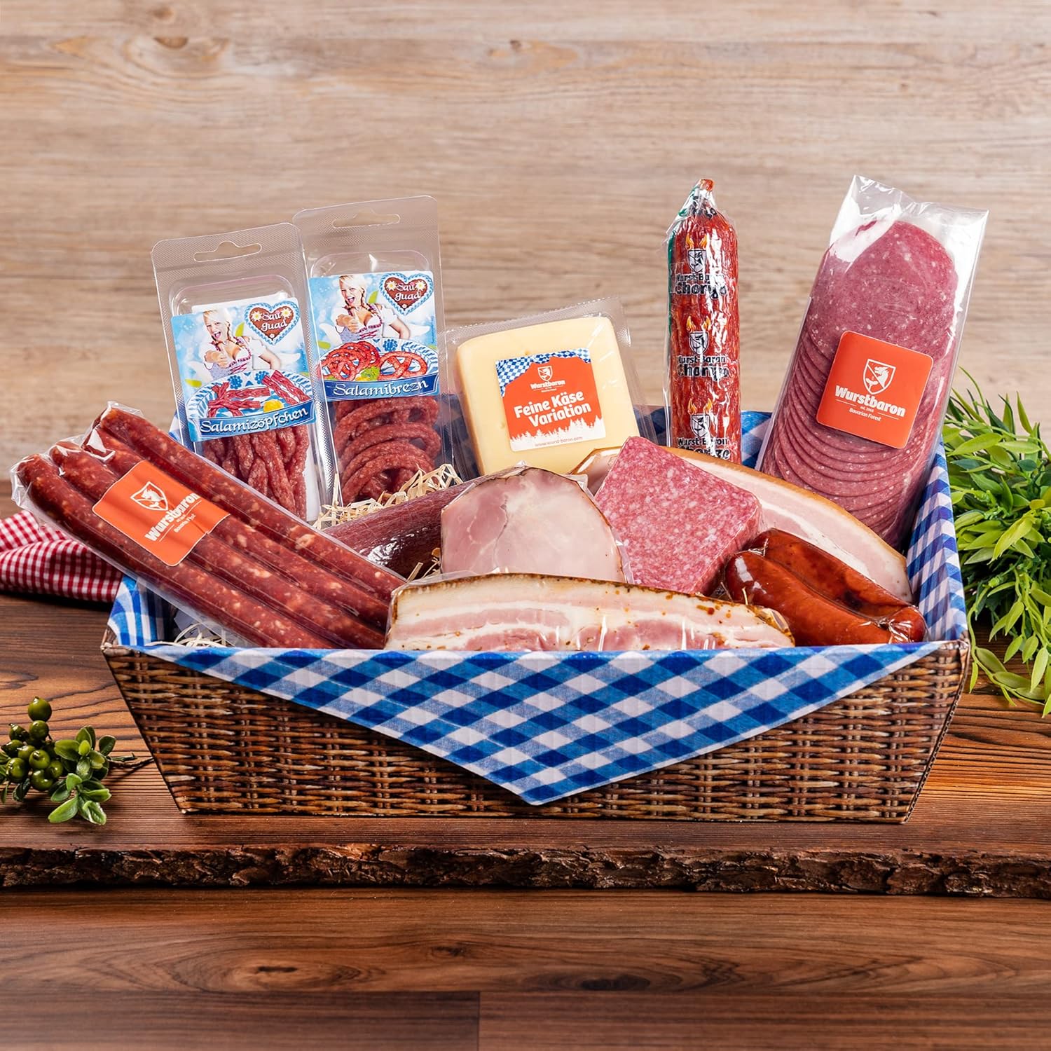 Wurst-Präsentkörbe – Wurstbaron® Bayern Maxi Geschenkbox mit Salami, Schinken und Speck, Wurstpaket mit ca. 1,9 kg