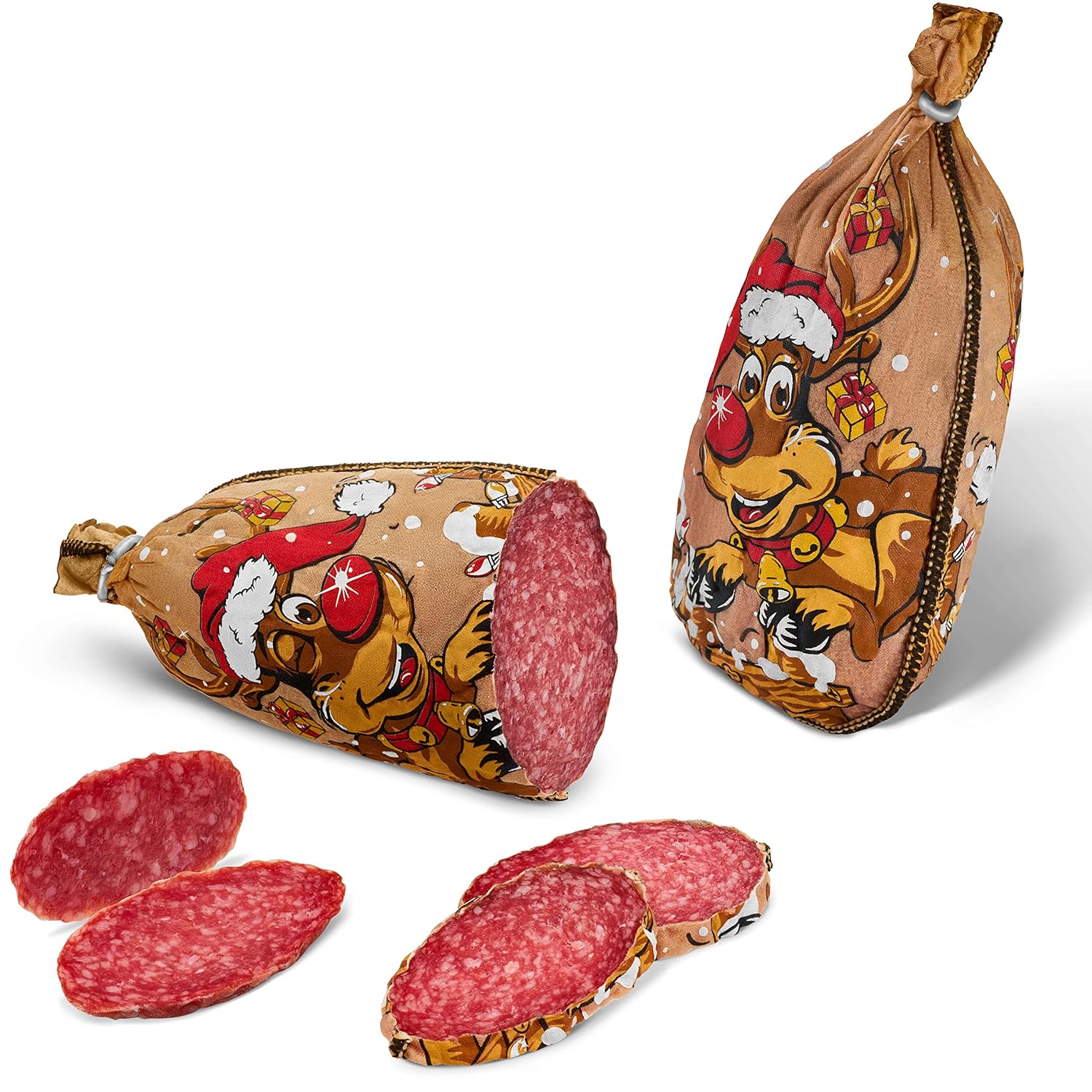 Wurst-Präsentkörbe – Wurstbaron® Salami Rentier – 225 g Leckere Salami im tollen Weihnachtsdesign, glutenfrei