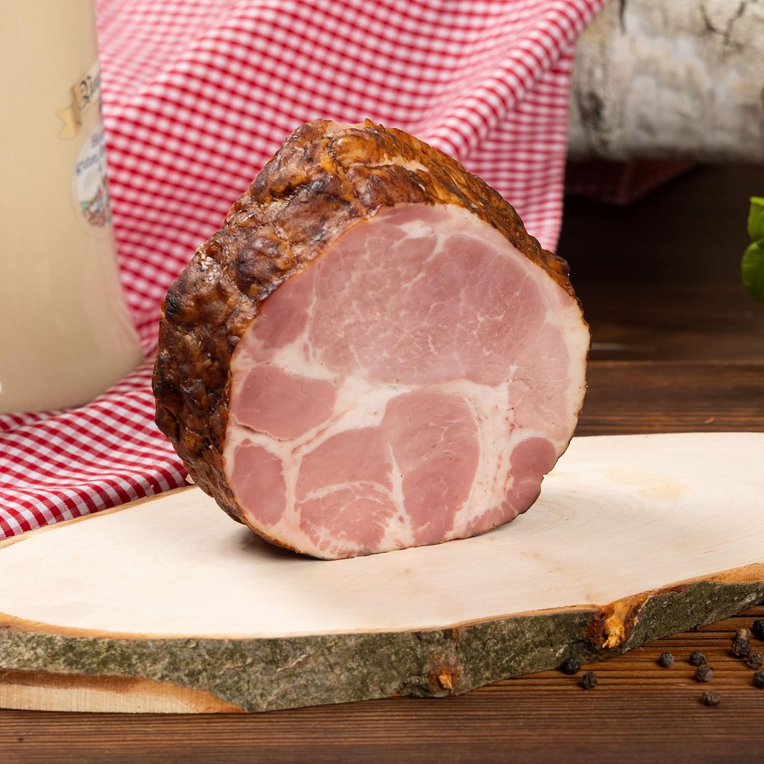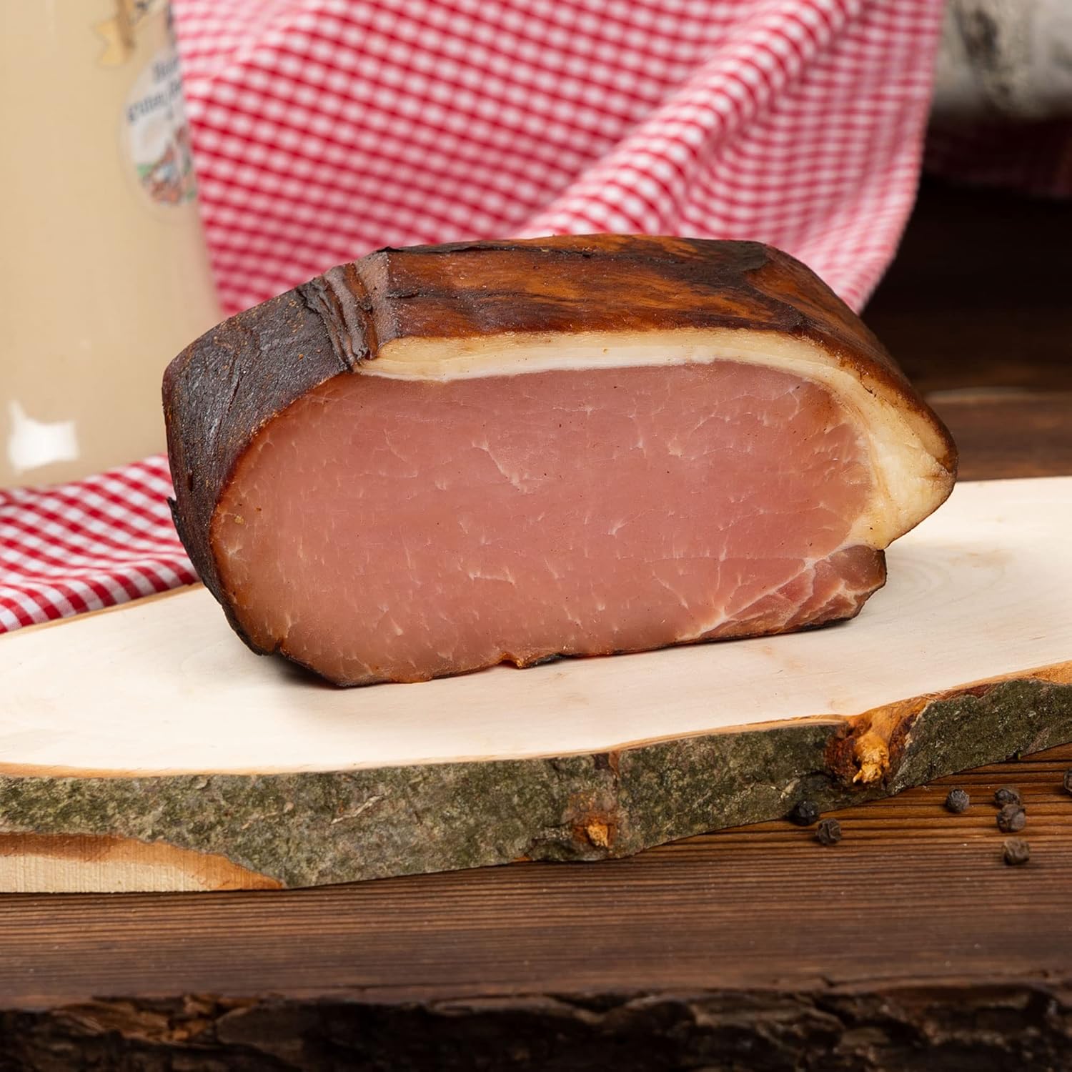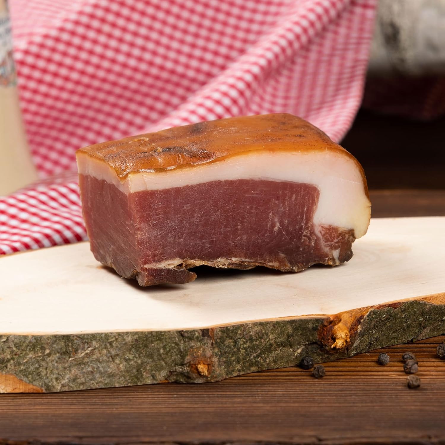 Wurst-Präsentkörbe – Wurstbaron Schinkenwurst-Geschenkbox aus Holz mit Serrano, Wacholderbauch, Bauerngeräuchertem, schwarzem Rauch, Hüttenspeck und Taschenmesser – 2,88 kg