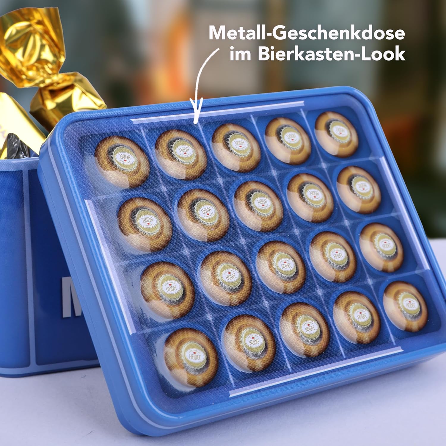 Sie sind auf der Suche nach einem besonderen Geschenk für Männer, das Genuss und Stil vereint? Die Heidel-Herrenbox ist eine originelle Bonbonbox im einzigartigen Bierbox-Design, gefüllt mit leckeren Schoko-Pralinen. Diese elegante Geschenkbox ist die perfekte Wahl für alle, die exklusive Männergeschenke suchen – ob als Vatertagsgeschenk, Papa-Geschenk, Geburtstag, Dankeschön-Geschenk oder für besondere Anlässe wie Ostern, Valentinstag oder ein Jubiläum.