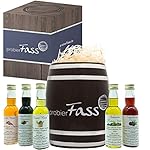 Die 5 genussvollen Essig- und Öl Flaschen sind liebevoll in einem originellen Fass verpackt, welches man später durchaus für viele Zwecke verwenden kann.