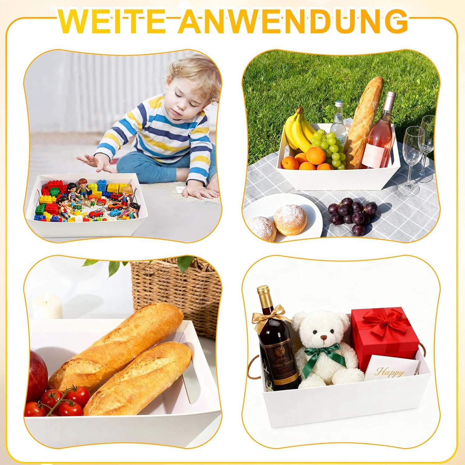 Hochwertiges Material: Die Geschenkkörbe bestehen aus hochwertigem, dickem Karton – robust, langlebig und nicht leicht zu beschädigen oder zu verformen. Sie sind wiederverwendbar und sorgen für ein angenehmes Benutzererlebnis.