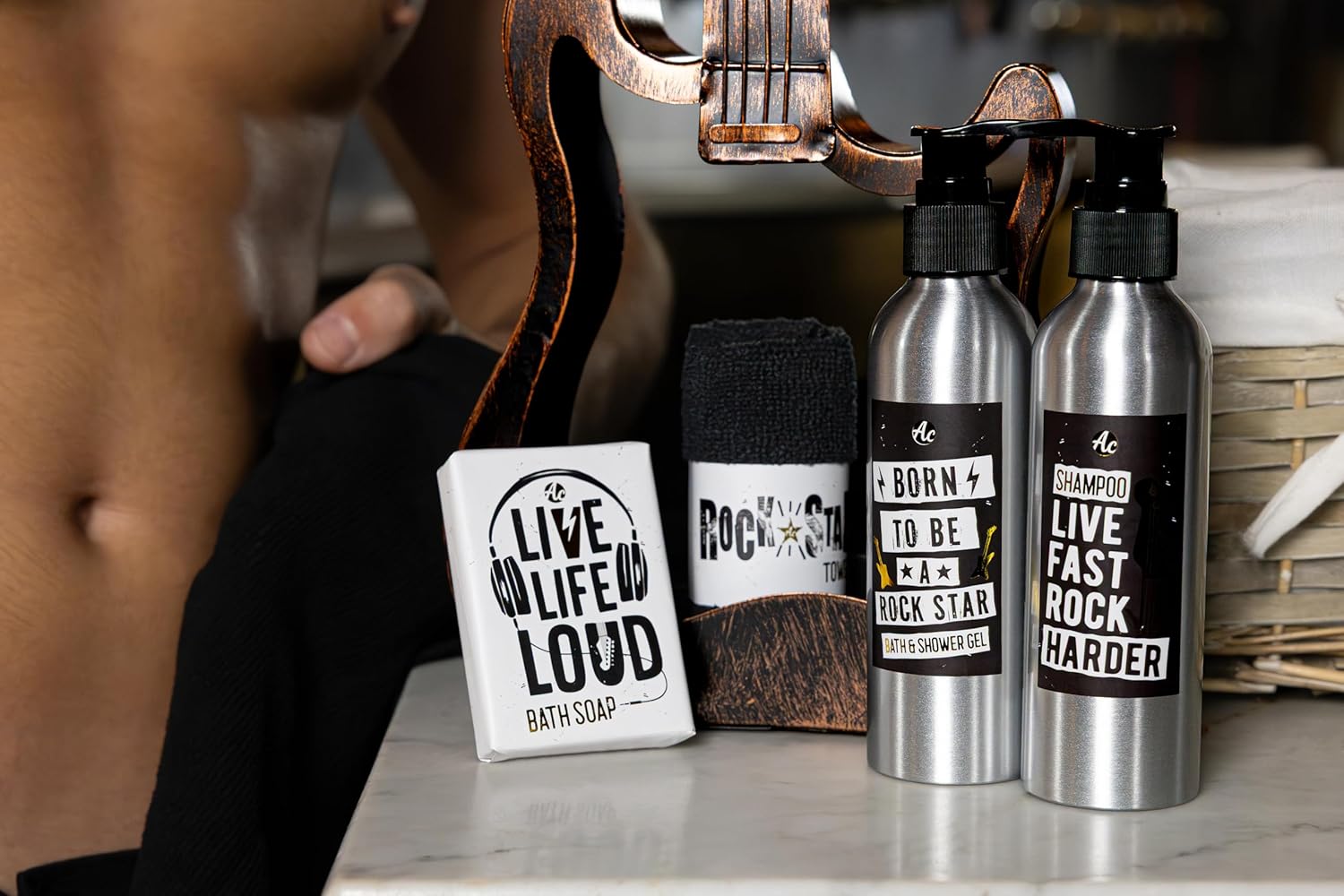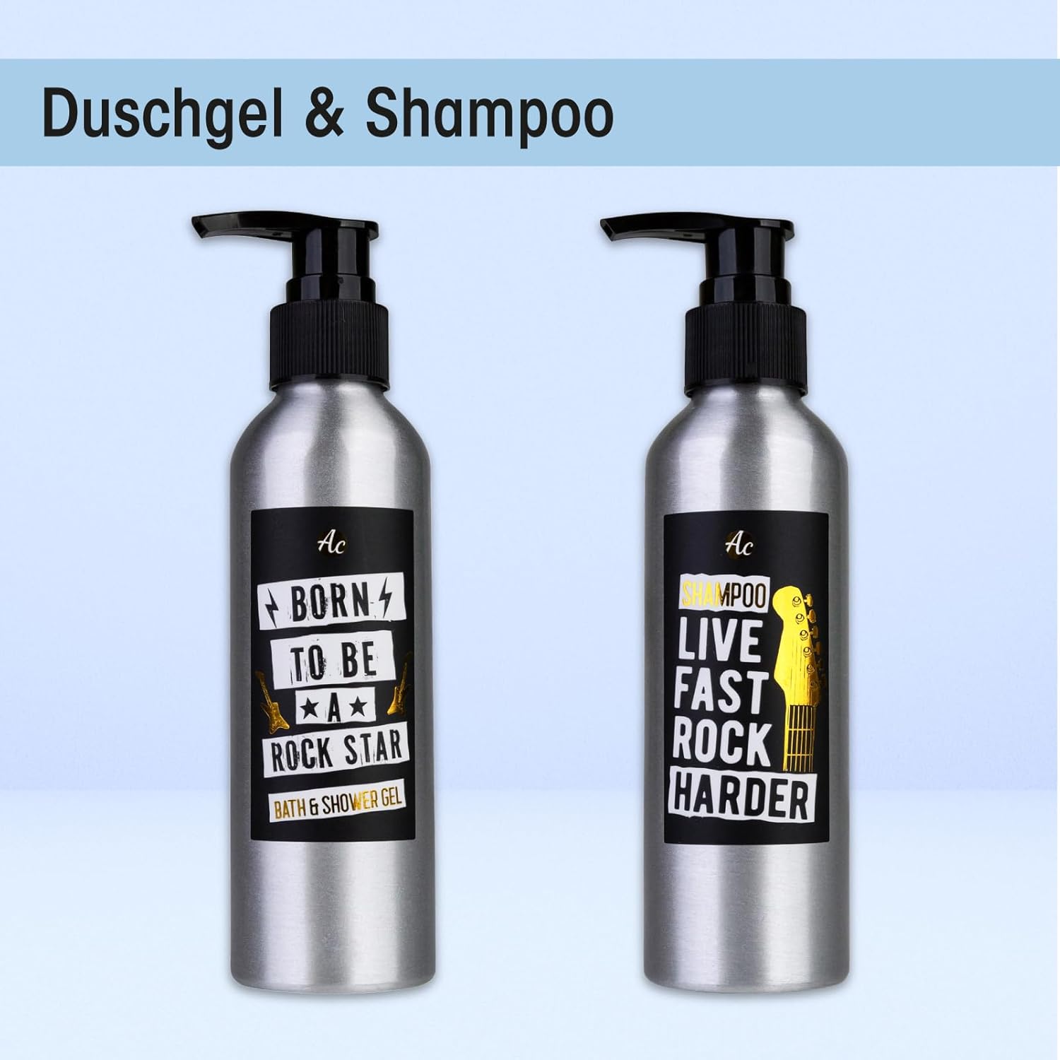 Anwendung: Duschgel, Shampoo und Seife passen perfekt nach dem Sport, der Arbeit oder einem Festival. Das Set ist eine praktische Idee für Reise, Hotel und Sporttasche und ein gut passendes Geschenk für Sie oder Ihn. Die Metallgitarre kann später als Dekoration im Badezimmer verwendet werden.
