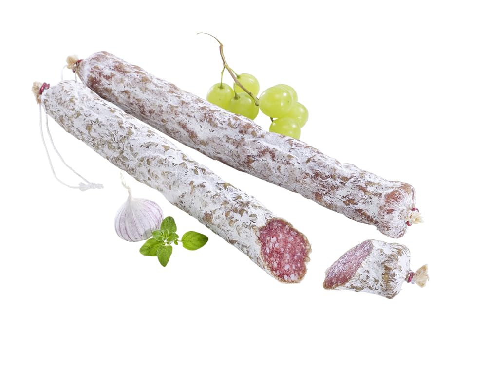 Italienisch, lecker, gut! Mit ihrem süßen Geschmack und dem festen Biss überzeugt die Bergbauernsalami jeden Salamifreund. Die Bergbauernsalami besteht zu 100 % aus Schweinefleisch und ist mindestens 5 Monate getrocknet.