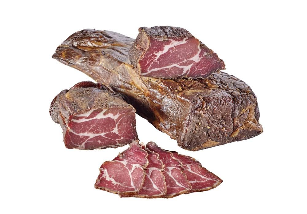 Viel Sonne, frische Bergluft und pure Leidenschaft sind die drei Zutaten, die unseren Südtiroler Schinkenspeck zu etwas ganz Besonderem machen. Für diese Spezialität werden magere Schweinebohnen mild geräuchert und über 6 Monate über feinstem Buchenholz luftgetrocknet.