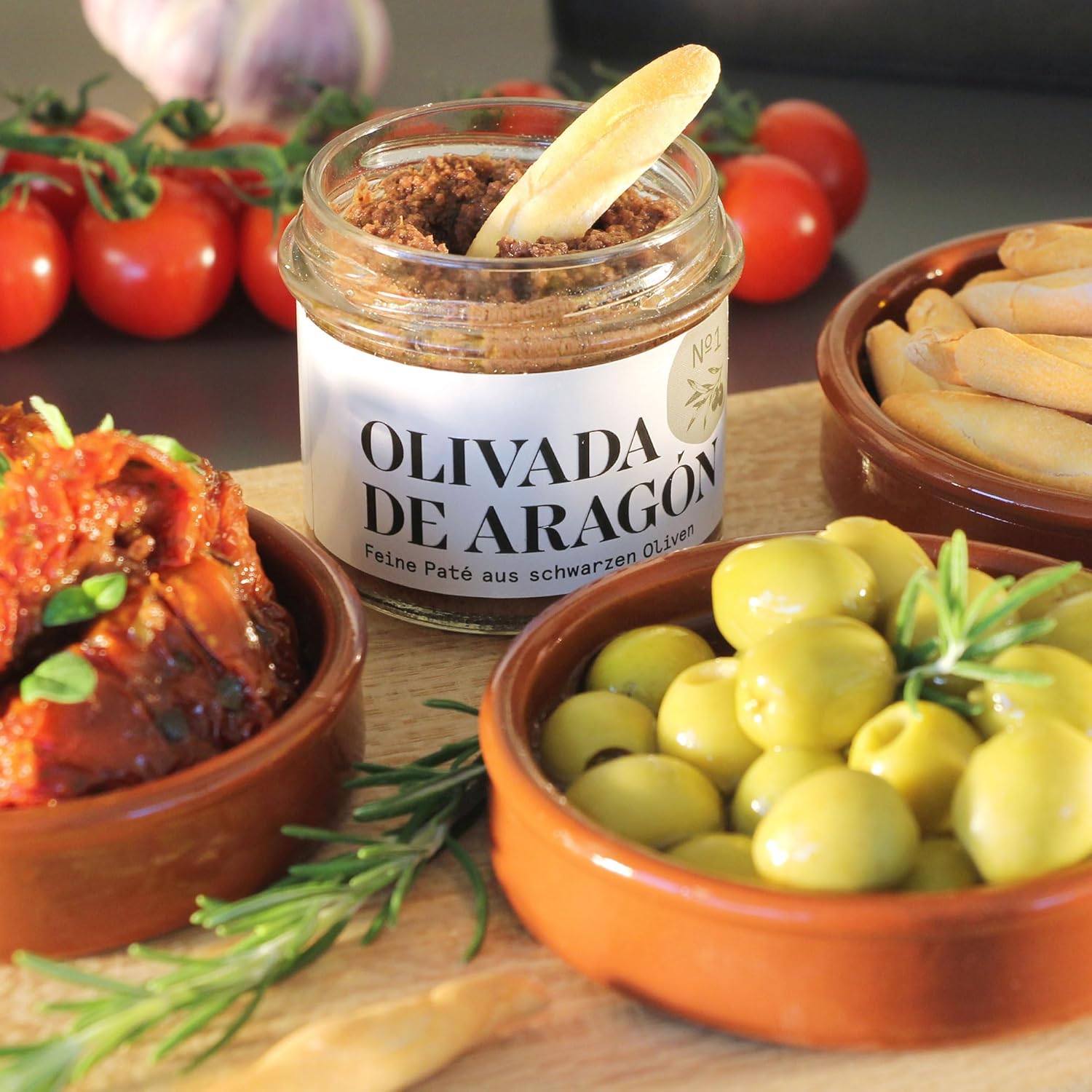 Feine Olivenpaste aus schwarzen Oliven, nativem Olivenöl Extra und mediterranen Gewürzen. Die traditionelle Tapas-Spezialität aus Aragón wird in Spanien auf geröstetem Baguette mit Olivenöl gereicht. Natürliche Zutaten, ohne künstliche Aromen, ohne Zusatz.