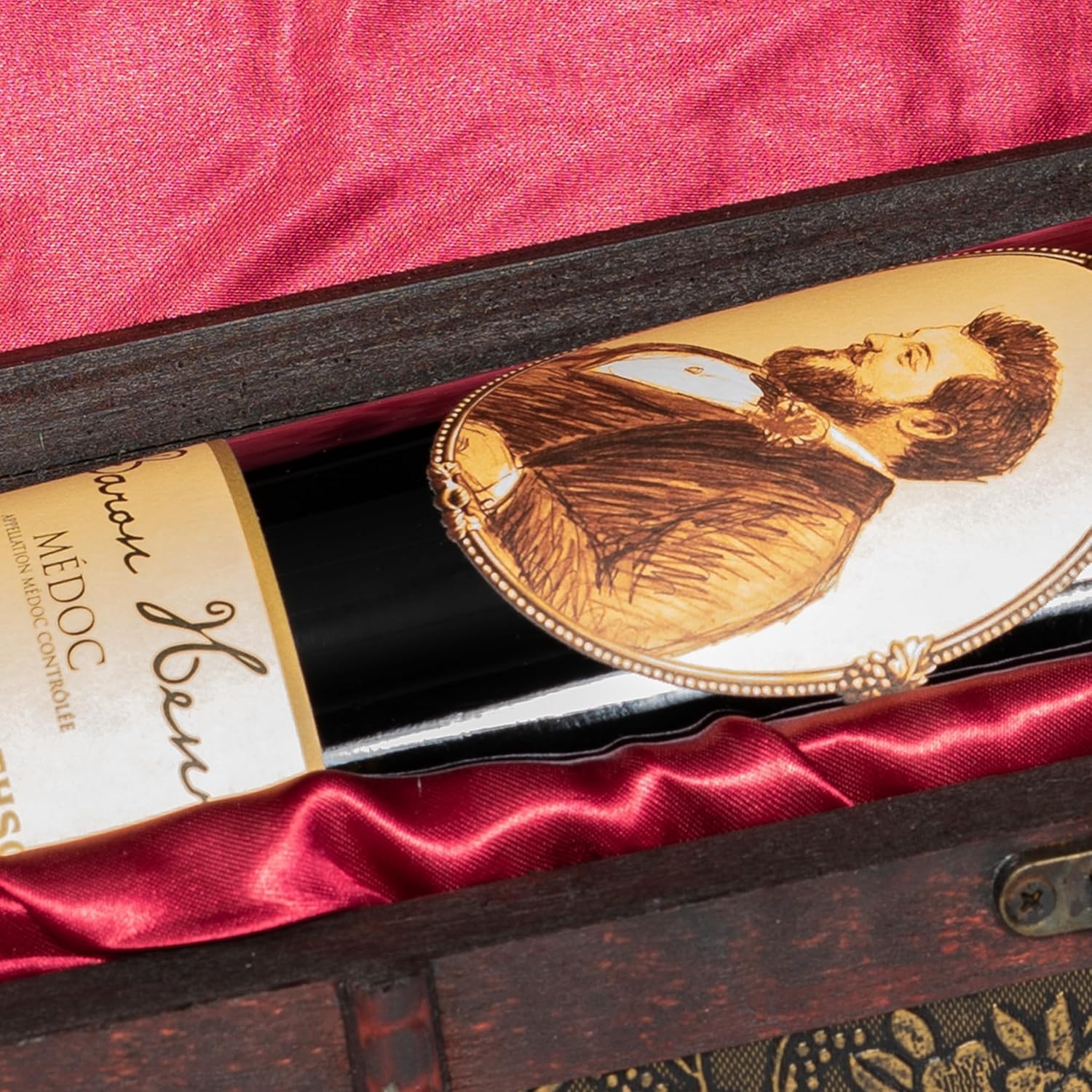 Die elegante Flasche aus französischem Bordeaux befindet sich in einer geflammten Holzkiste. Die Flasche ist durch Holzwolle optimal geschützt, sodass beim Versand nichts passieren kann. Ein Begleittext zur Geschichte von Baron Henri ist ebenfalls beigefügt. Alles in allem ein sehr elegantes Geschenk oder sogar ein schönes Stück für den eigenen Weinkeller.