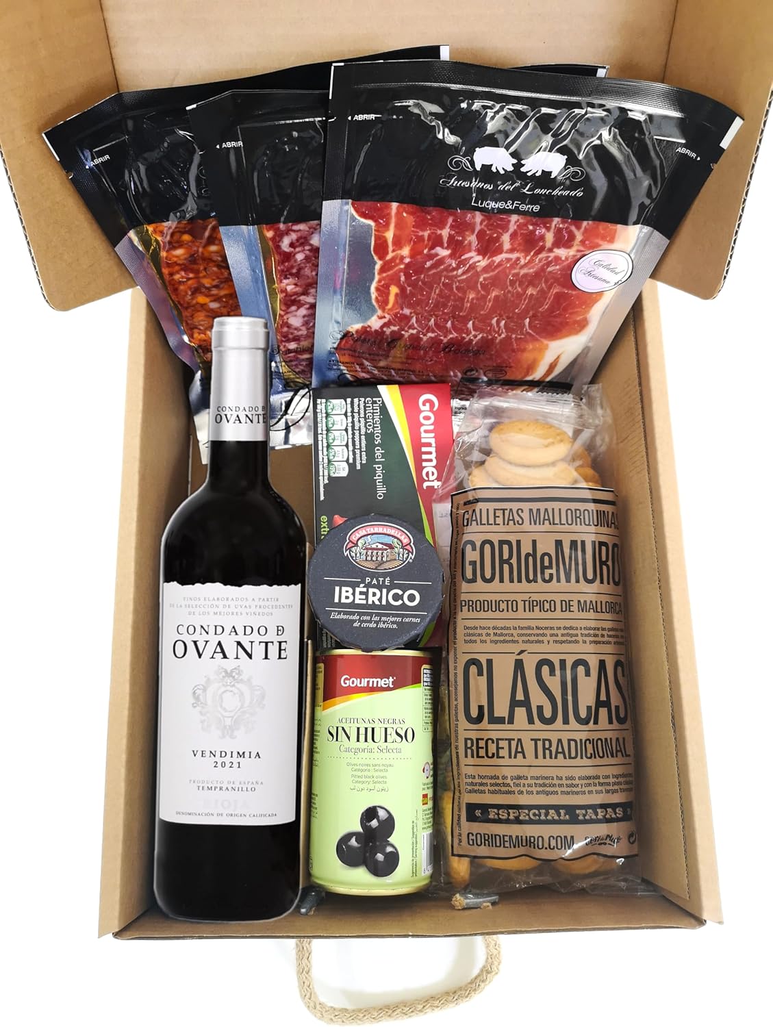 Geschenkbox mit mallorquinischem Wein, Detapasbox Mallorca und Pata Negra